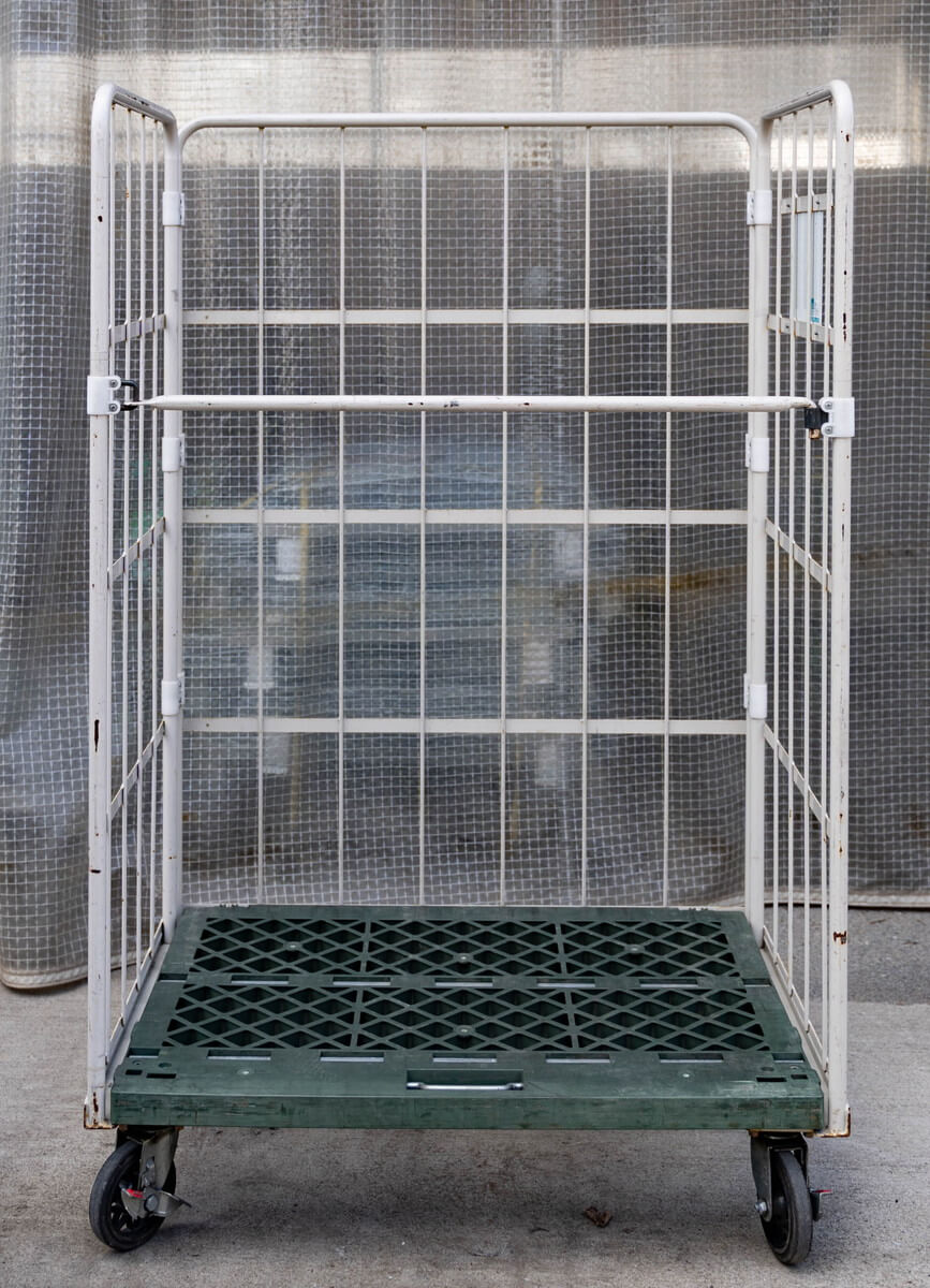 ヤマト・インダストリー製のカゴ台車(W1100×D800×H1700サイズ)の中古品を販売します!!