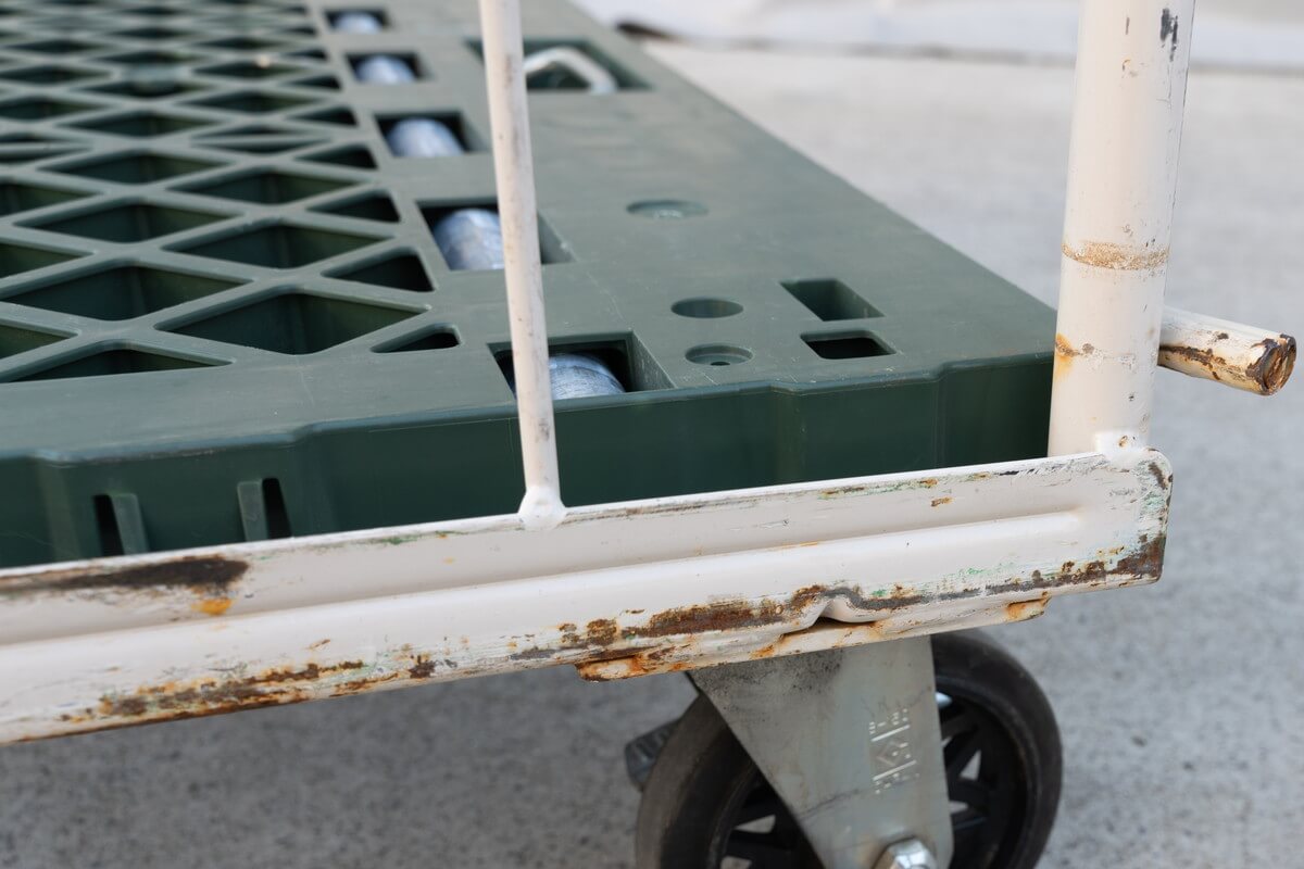 - 中古カゴ台車につき、多少キズやサビ、汚れ等がございますが、機能は問題ございません。