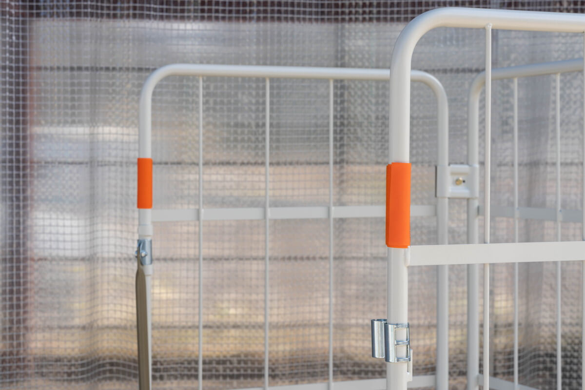 例えばカゴ台車を入れる荷物によって色分けしたい、という場合はカゴ台車の塗装を変えるというのが一般的ですが、それだと納期もかなりかかってしまいますし何より塗装のコストがかかってしまいます。