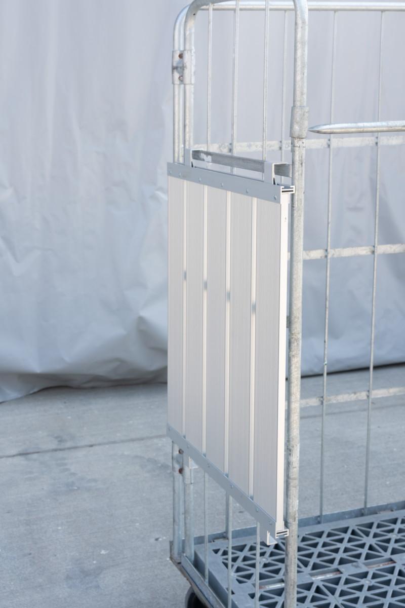 アルミ製なので自重わずか3.2kg!女性でも取り外しが楽々です!1台のカゴ台車に3枚(段)まで取付が可能です。