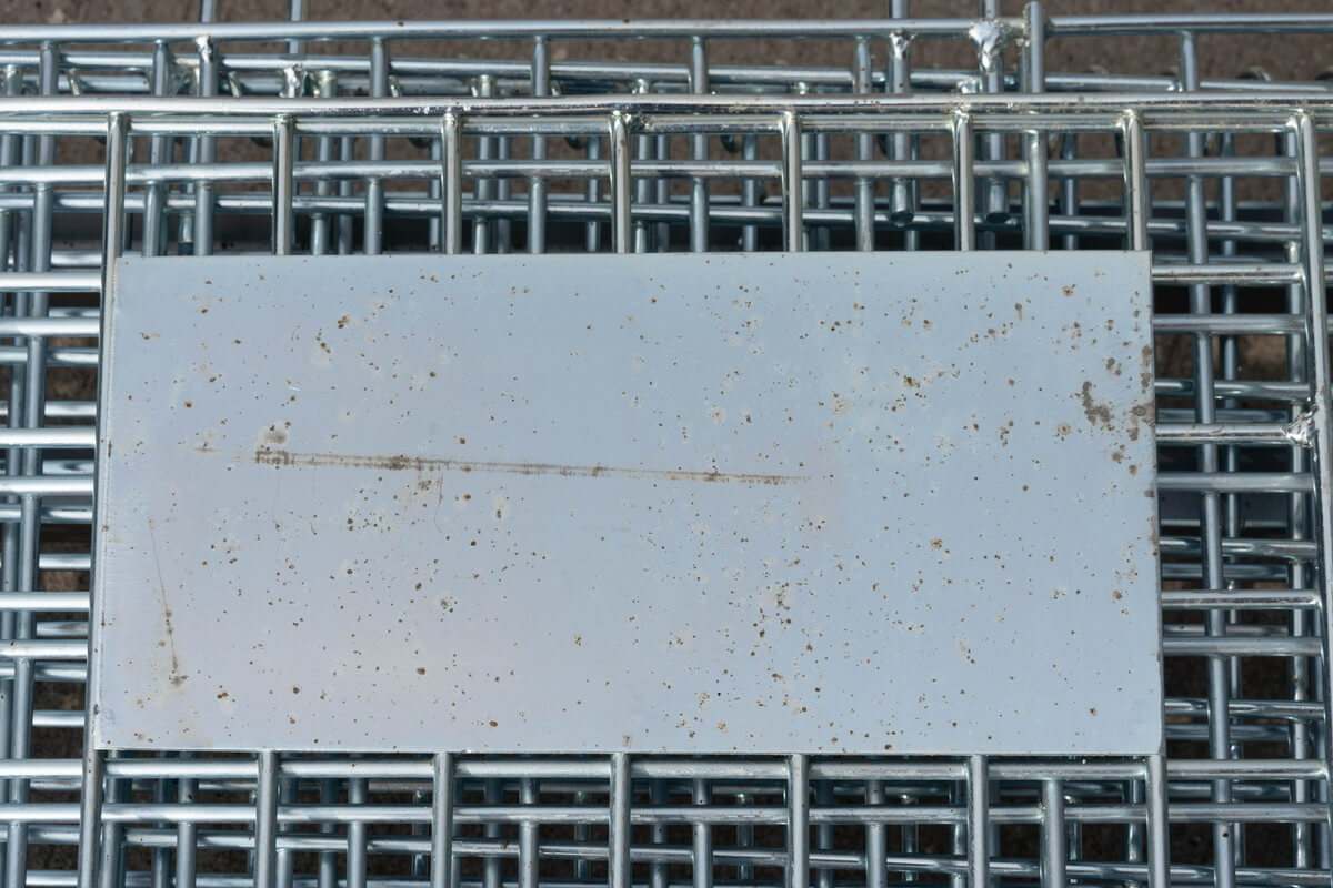 「【販売終了】【新品】メッシュパレット W1200×D1000×H900 ピッチ50x50mm」の商品と同じ商品になりますが、看板部、メッシュ部分に汚れ、サビがある為、訳あり品としてアウトレットでの販売となります。