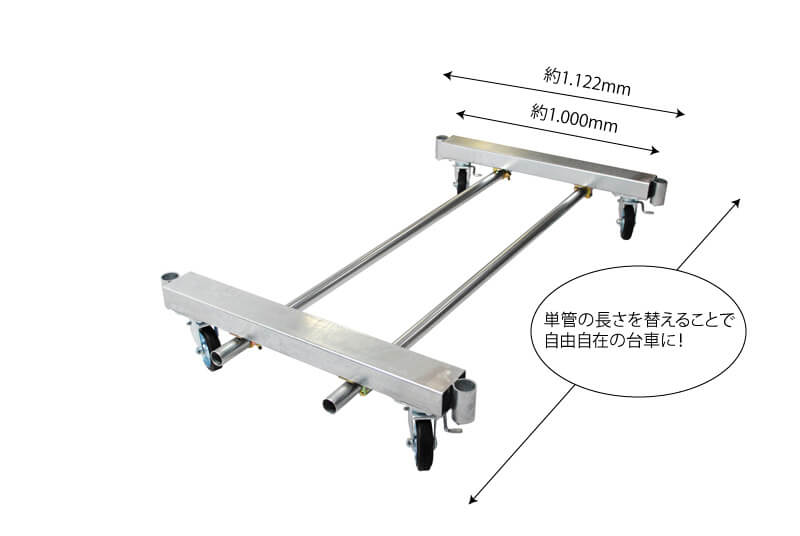 単管パイプ組立台車「TWIN800」(1フレームサイズW1122×D125×H270サイズ)の中古品を販売いたします!!