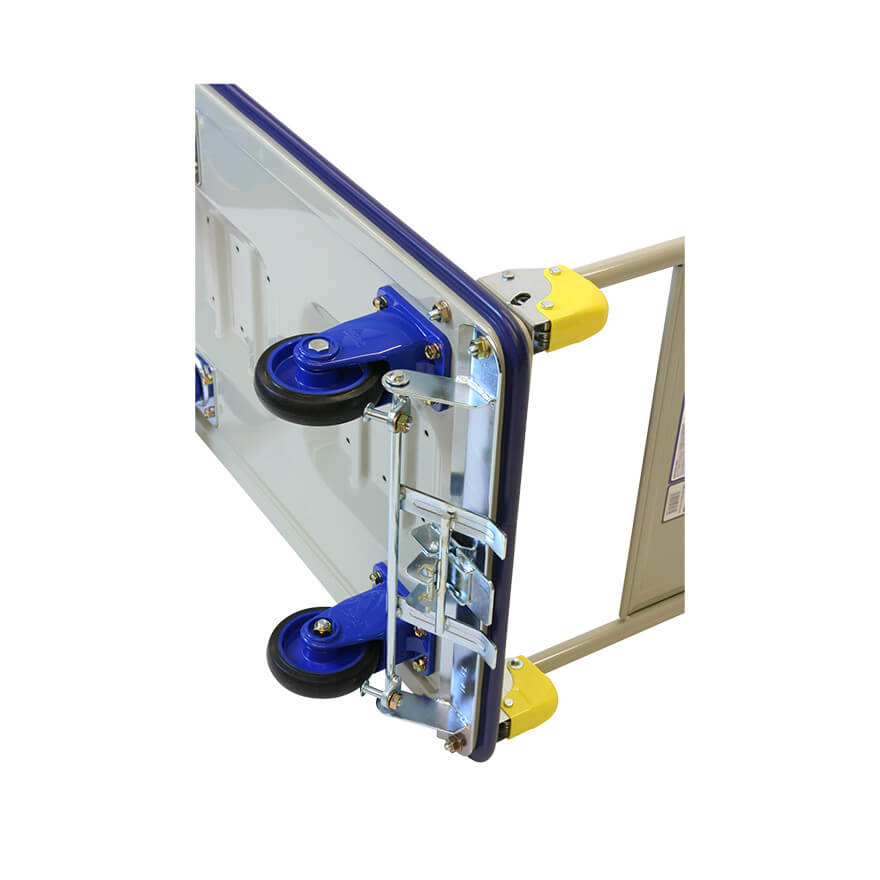 - 荷台の材質にハイテン鋼を採用、従来品と同強度で約15%の軽量化を実現した低騒音スチール台車です。