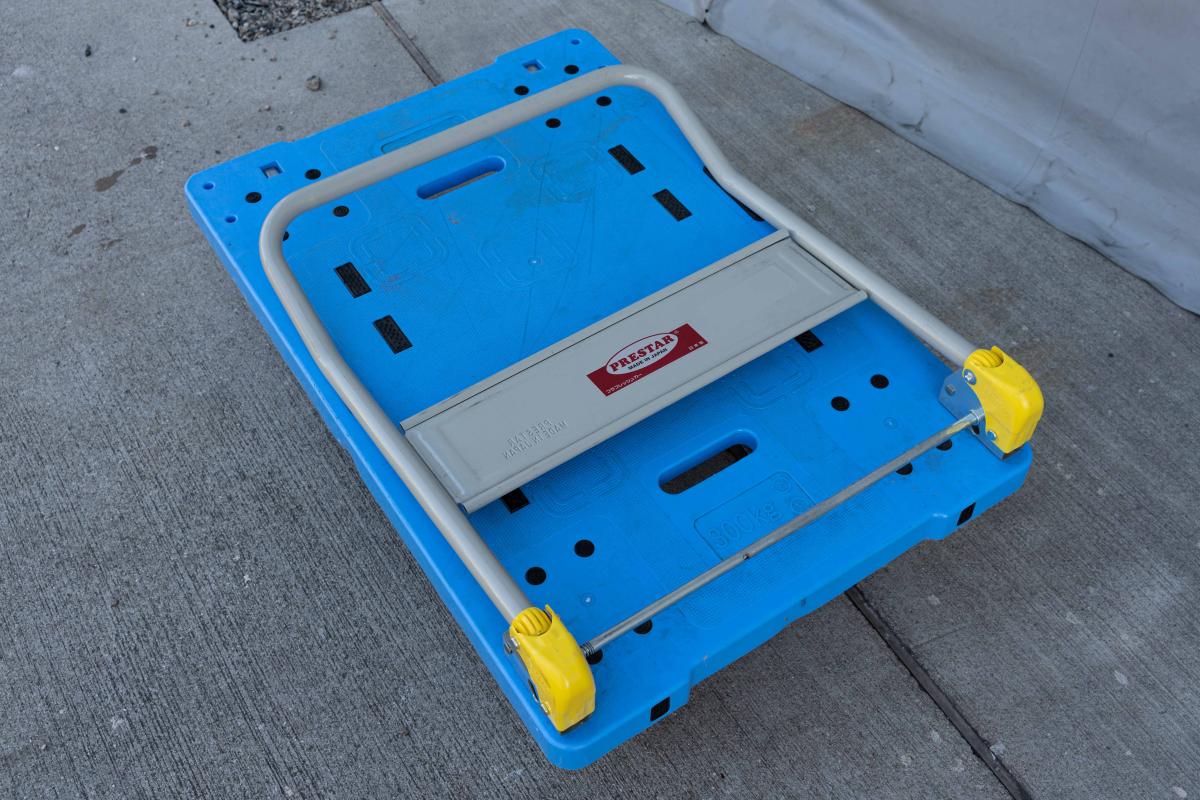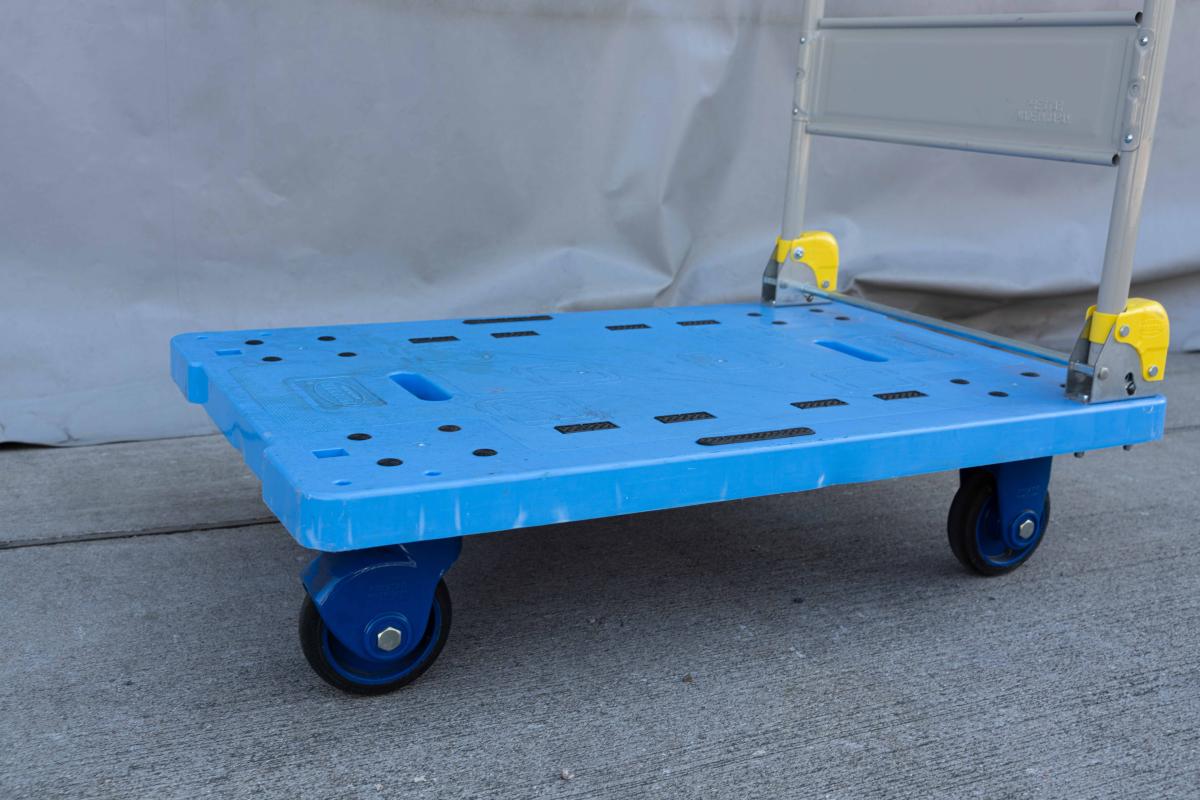 軽くて使いやすいプラスチック製天板の手押し台車です。