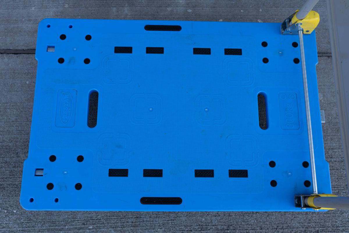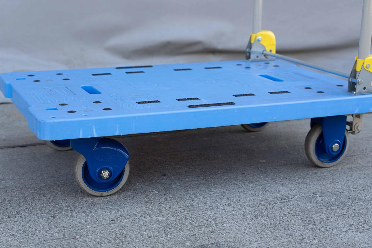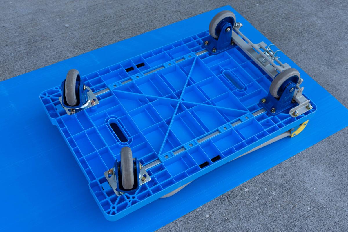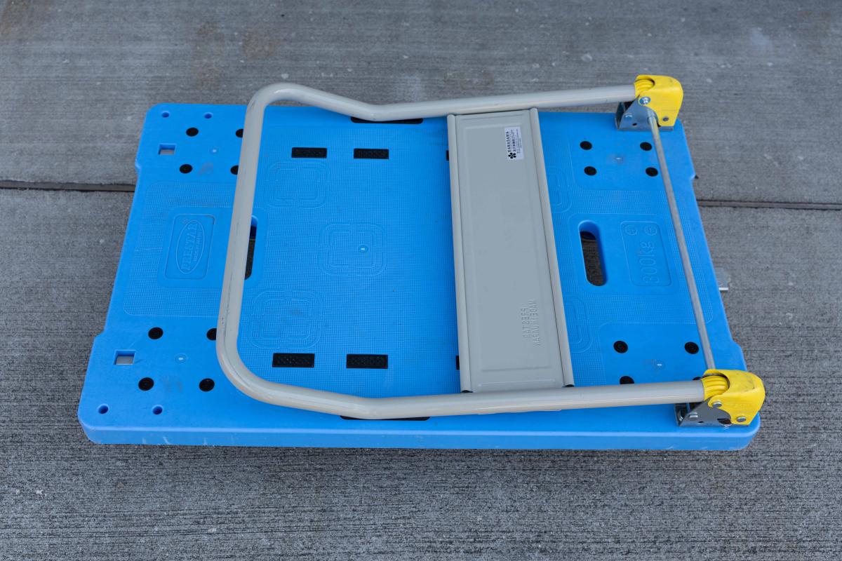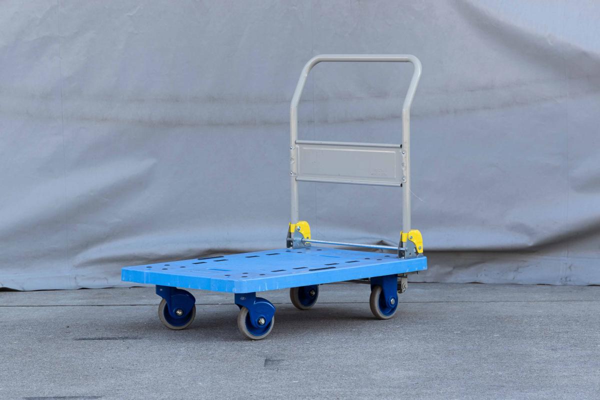軽くて使いやすいプラスチック製天板の手押し台車です。