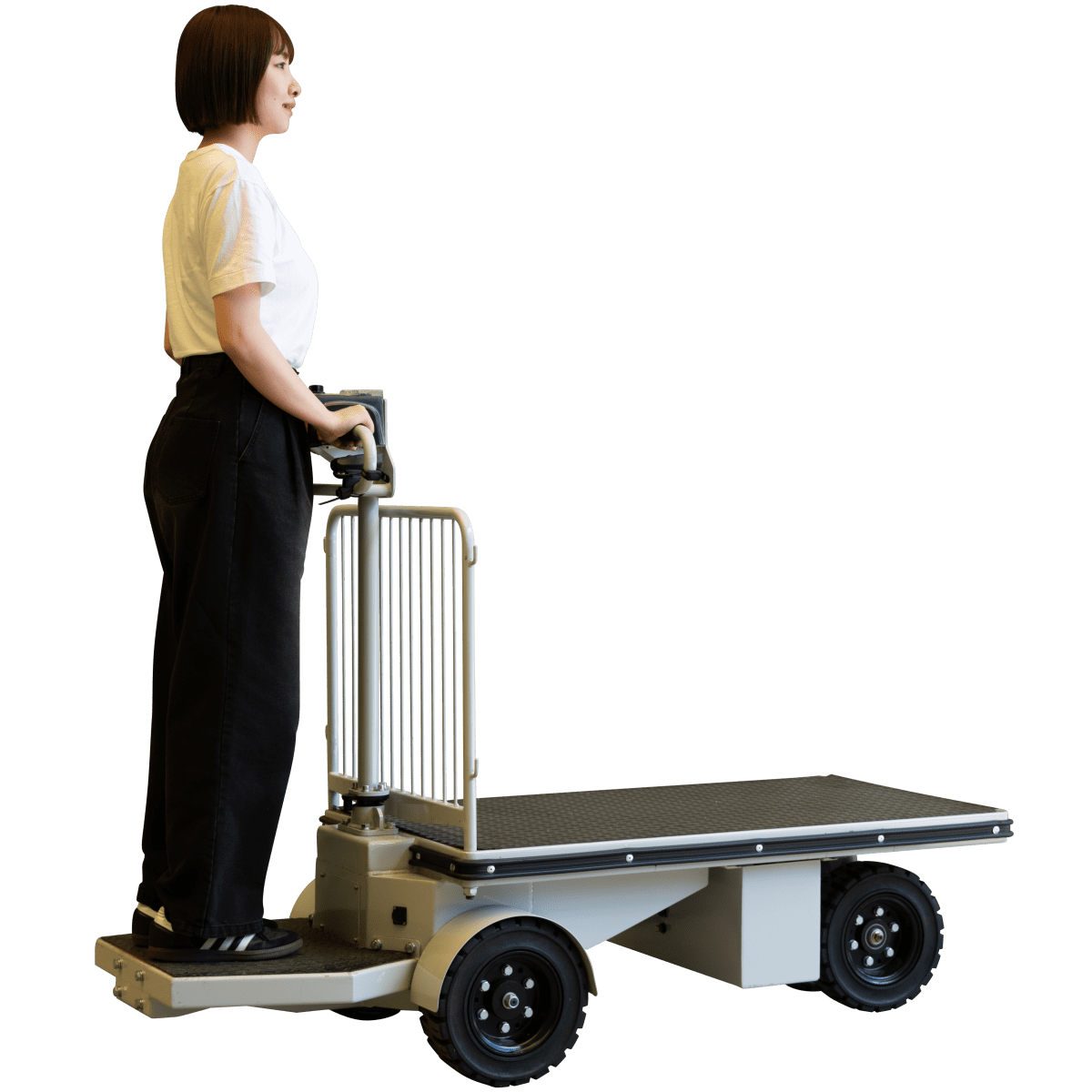 「体力的にキツイ…」「重量物の運搬が危ない」など現場の様々な悩みの声に応えるべく乗れる電動台車がついに登場。前進、後退、操作もラクラク!
