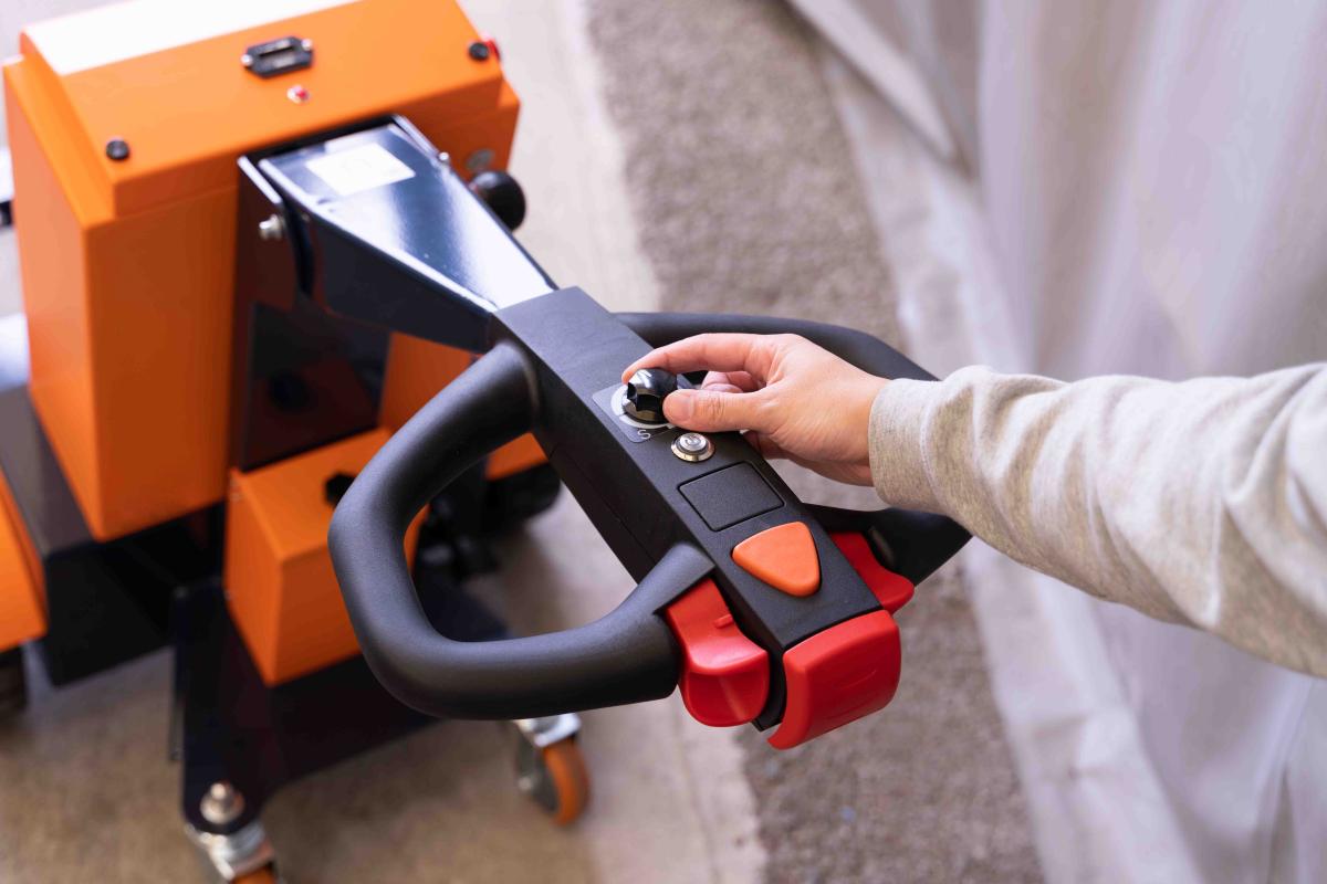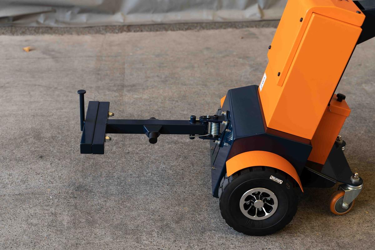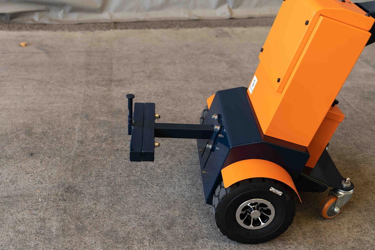 電動アシスト牽引車「パワフルバディ」はスイッチを押して電源オン。
