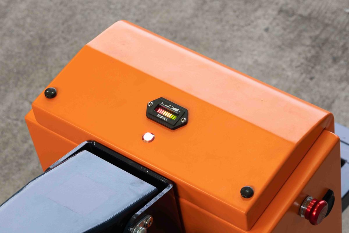電動アシスト牽引車「パワフルバディ」のハンドル近くにあるバッテリーインジケーターで残量を確認できます。