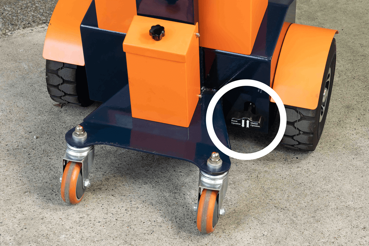 充電が切れてしまった際は、足元のレバーを下げると手動で移動可能です。