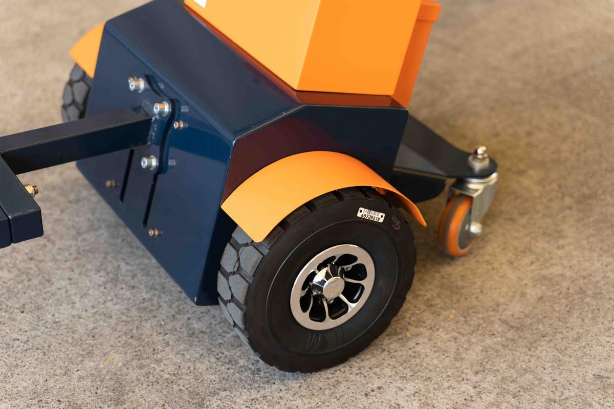 電動アシスト牽引車「パワフルバディ」は水平使用時に1t(1,000kg)までの重量物を牽引可能です。