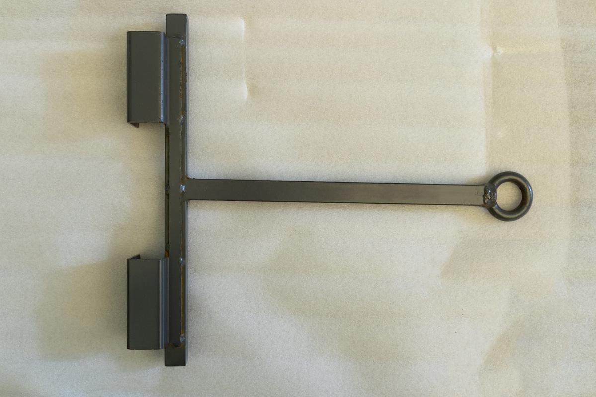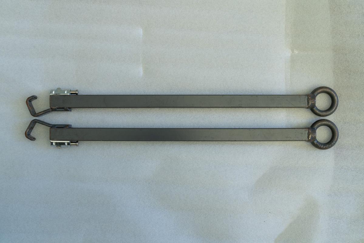 カゴ台車などを牽引する、2本1セットのアタッチメント金具です。