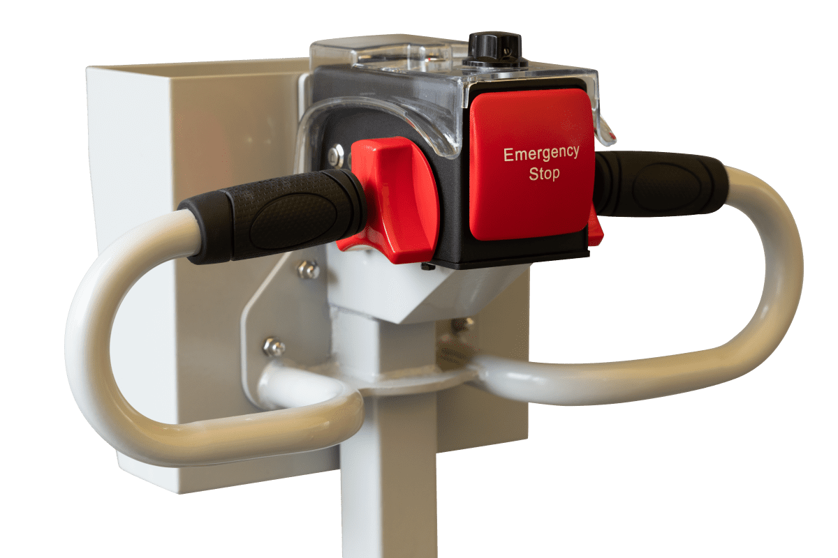 ハンドル部分に緊急停止ボタン、スロットルにはブレーキ機能を搭載しています。