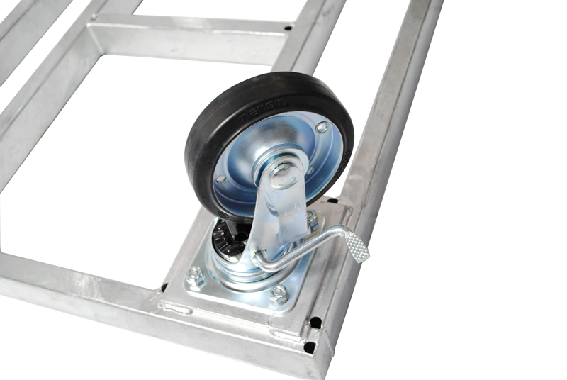 ※溶融亜鉛メッキは高熱の亜鉛浴槽に浸けて行われるため、若干のたわみがある事がありますが、台車の強度、使用には問題ありませんので、予めご了承ください。