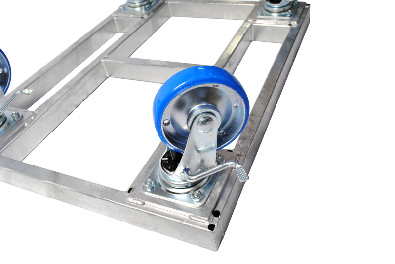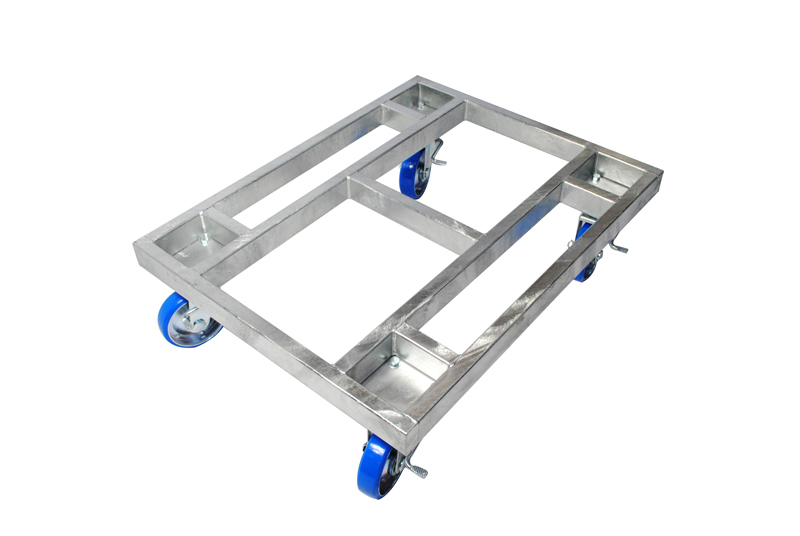 ※溶融亜鉛メッキは高熱の亜鉛浴槽に浸けて行われるため、若干のたわみがある事がありますが、台車の強度、使用には問題ありませんので、予めご了承ください。