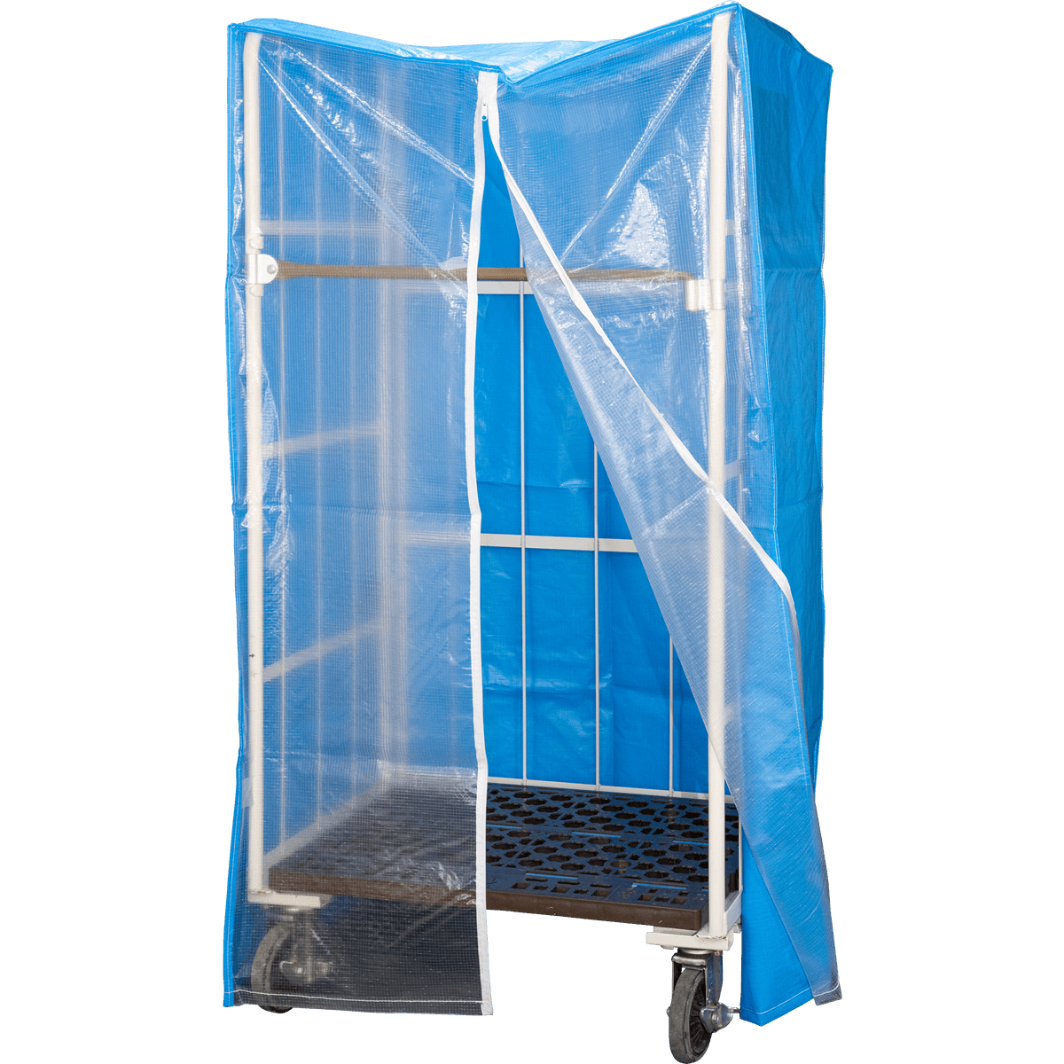 防塵・防滴を目的としたカゴ台車専用カバーです。急な雨からも一時的にお荷物を守ることができます。(完全防水ではございません)