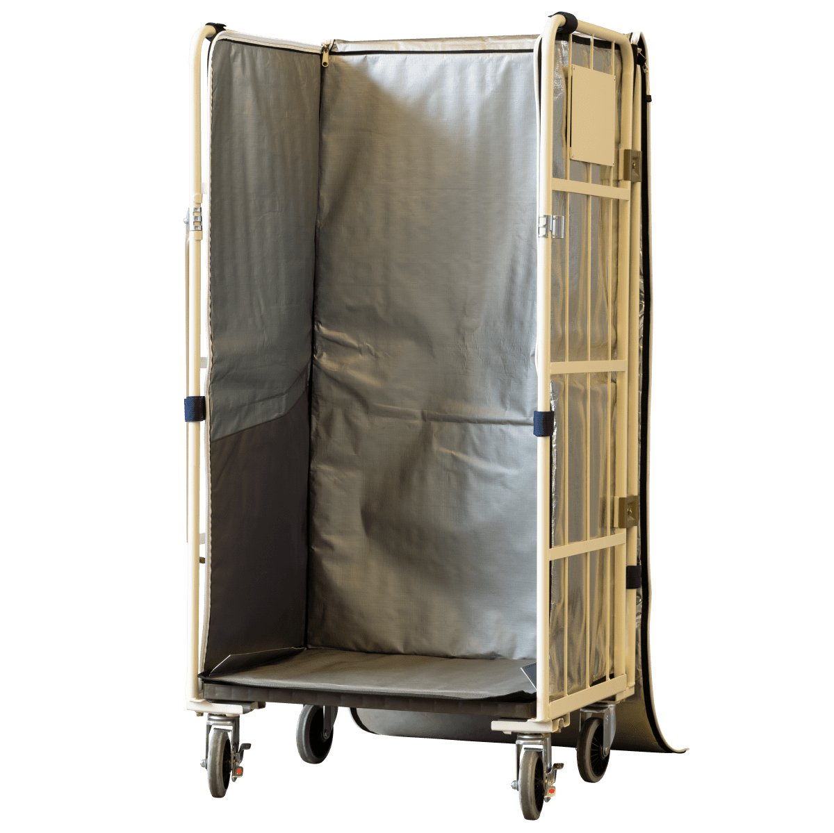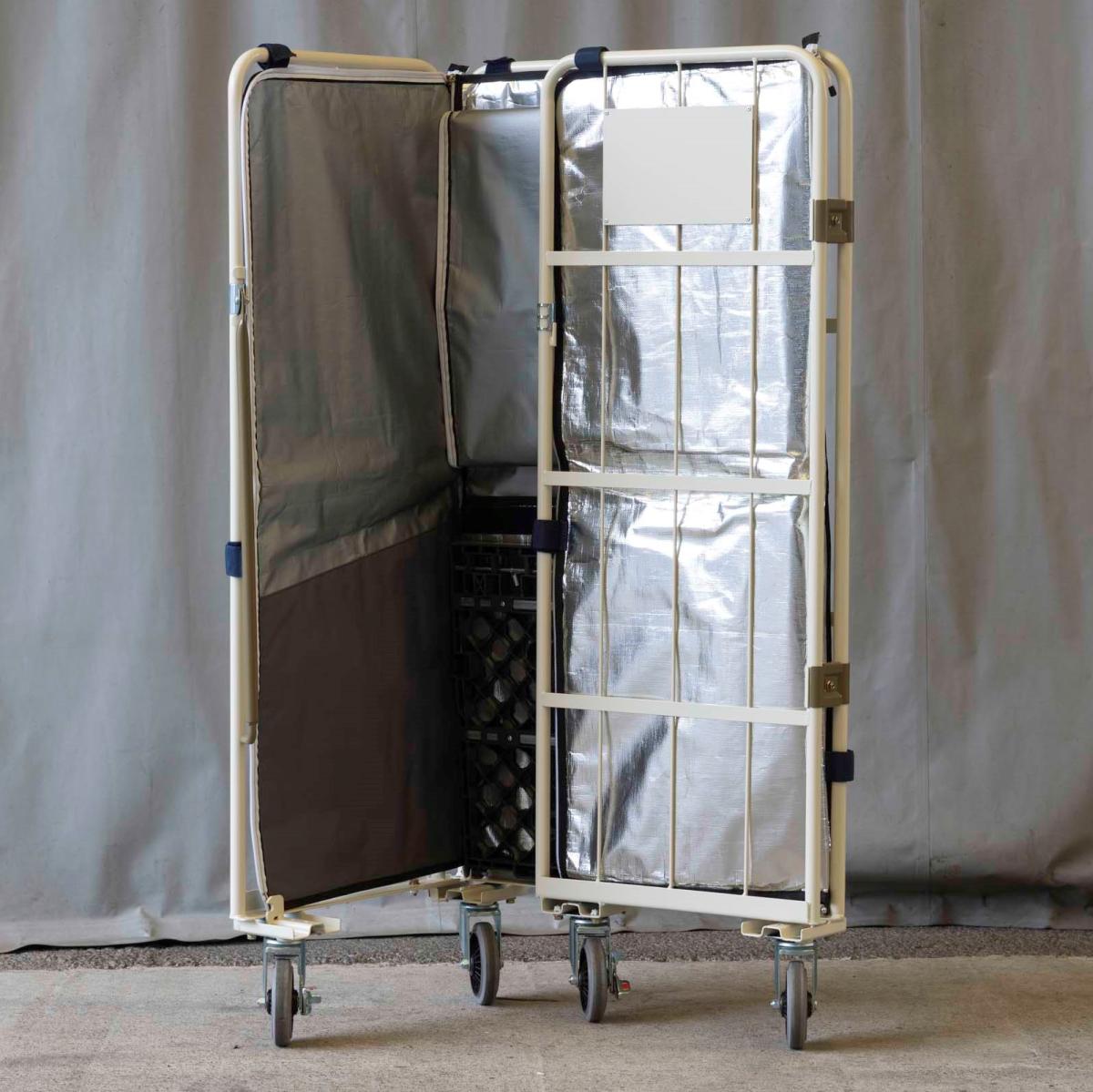 保冷を目的としたカゴ台車専用カバーです。冷凍食品・生鮮食品など、要冷蔵食品の品質管理に効果を発揮します。暑い季節に大活躍!!