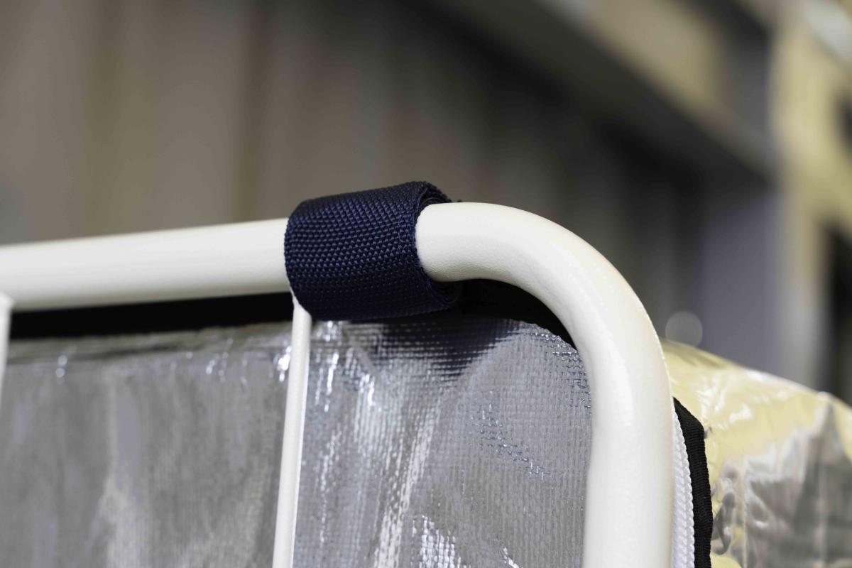 カゴ台車への取付けはマジックテープなので簡単に脱着が可能です。
