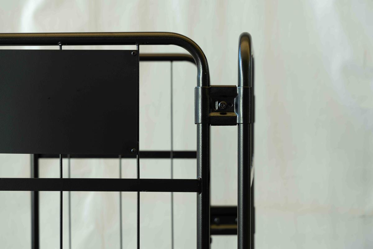- 両面を折りたたんだ状態ではカゴ台車は自立しません。