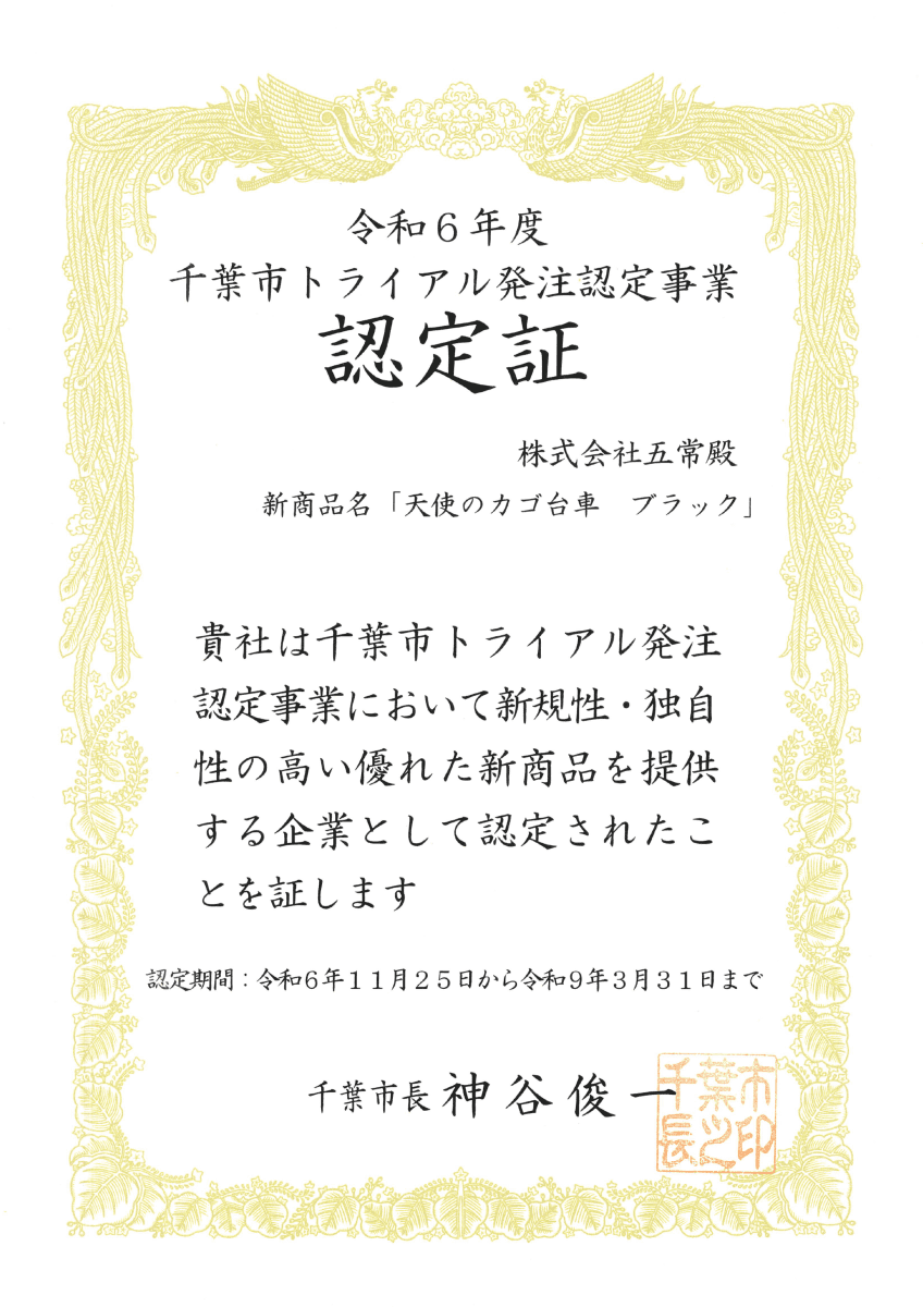 本製品の新規性・独自性が評価され、令和6年度千葉市トライアル発注認定事業に認定されました。