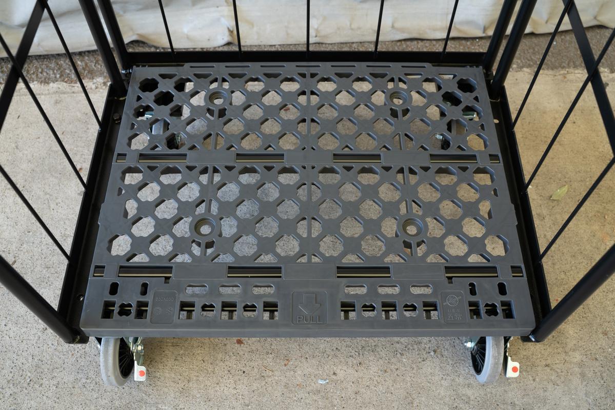 需要が多い人気のサイズで、割れにくい床板樹脂・ゴム跡が目立ちにくいグレーキャスターを使用。とても使いやすいカゴ台車です。