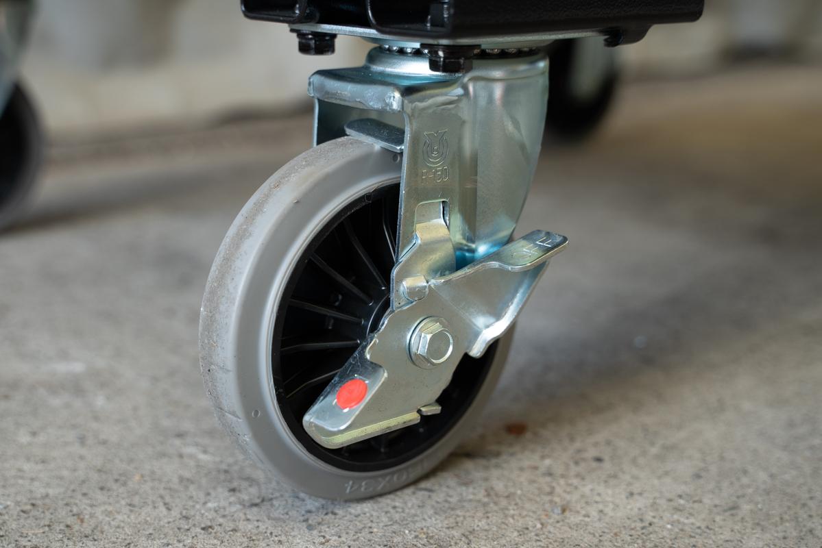 「【新品】カゴ台車用タフキャスター 自在モデル ストッパー付き φ150黒ゴム」です。通常のキャスターよりも滑らかに動かすことができます!
