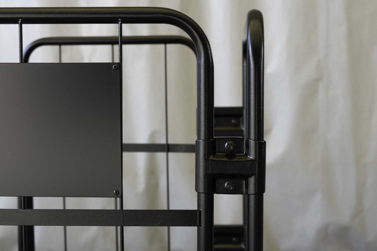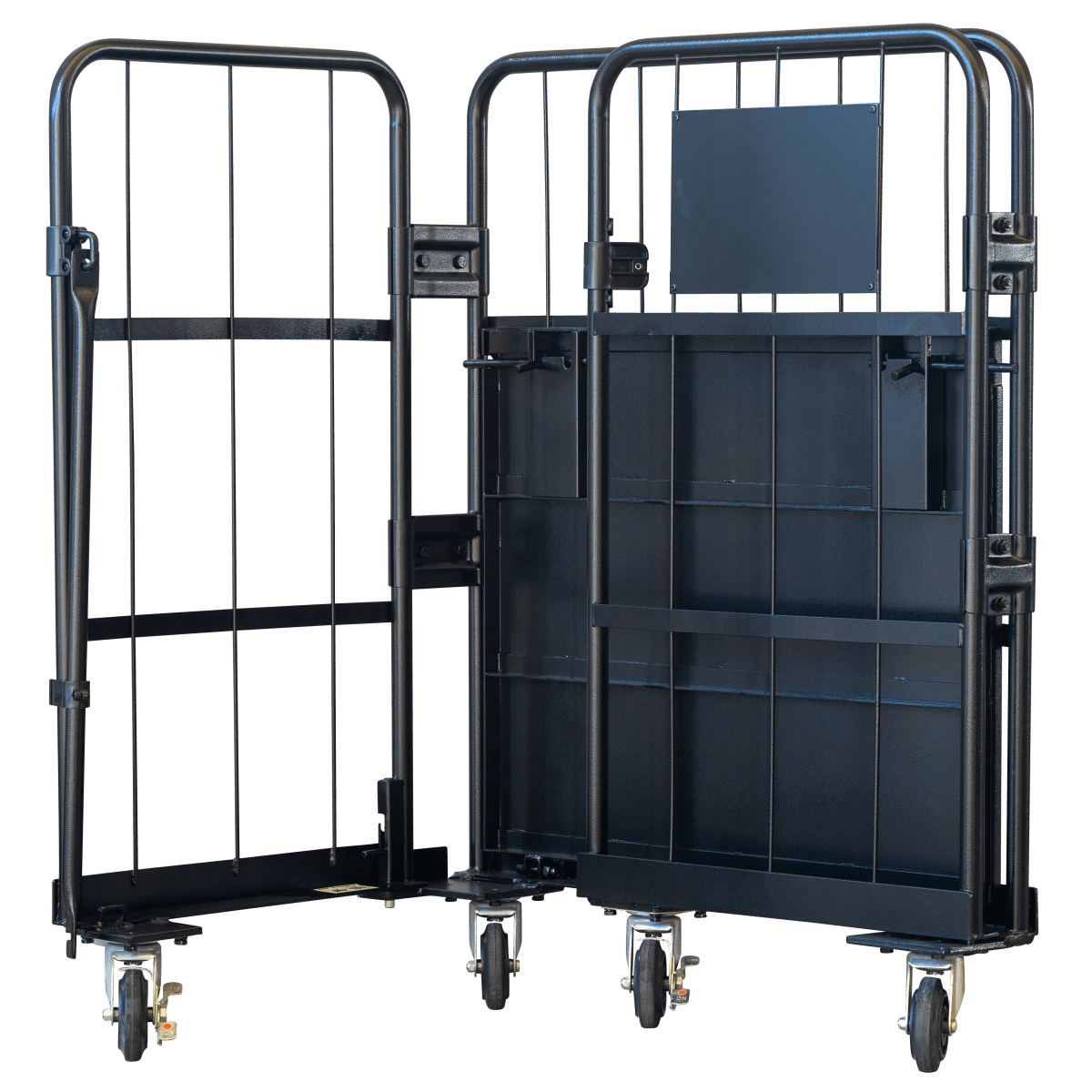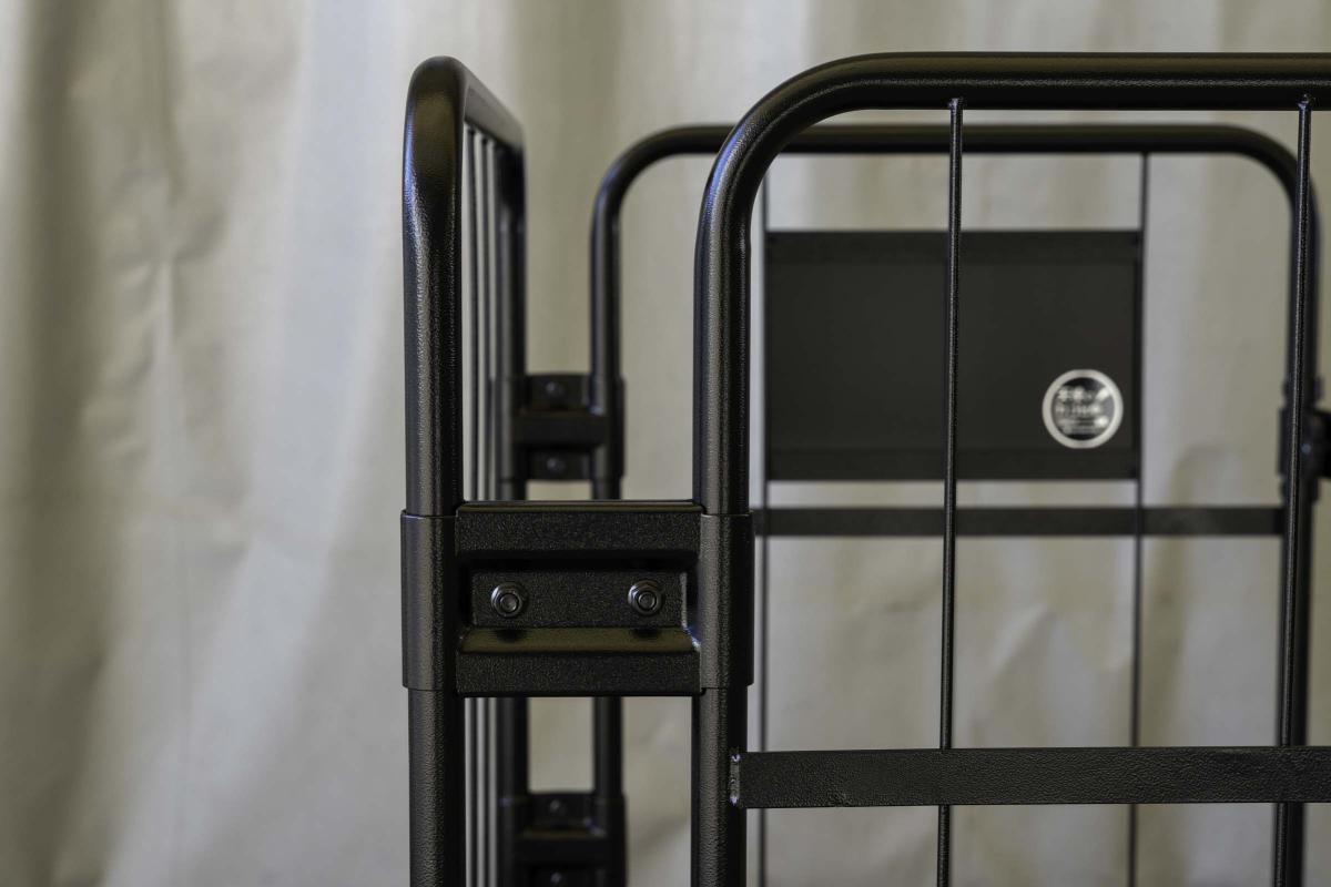 - 両面を折りたたんだ状態ではカゴ台車は自立しません。