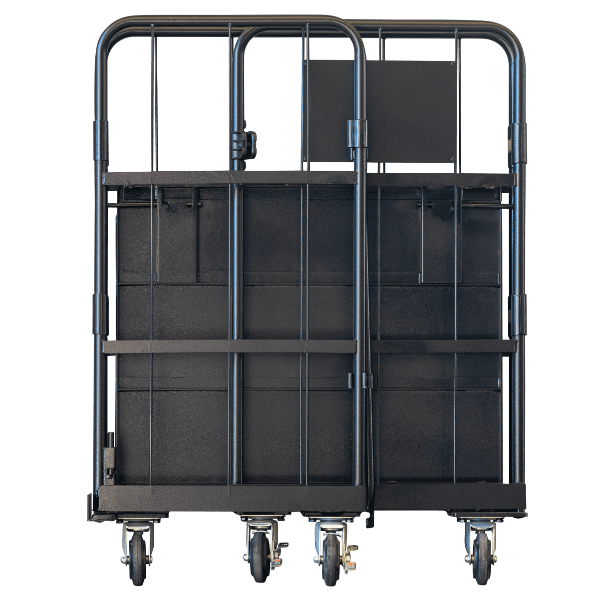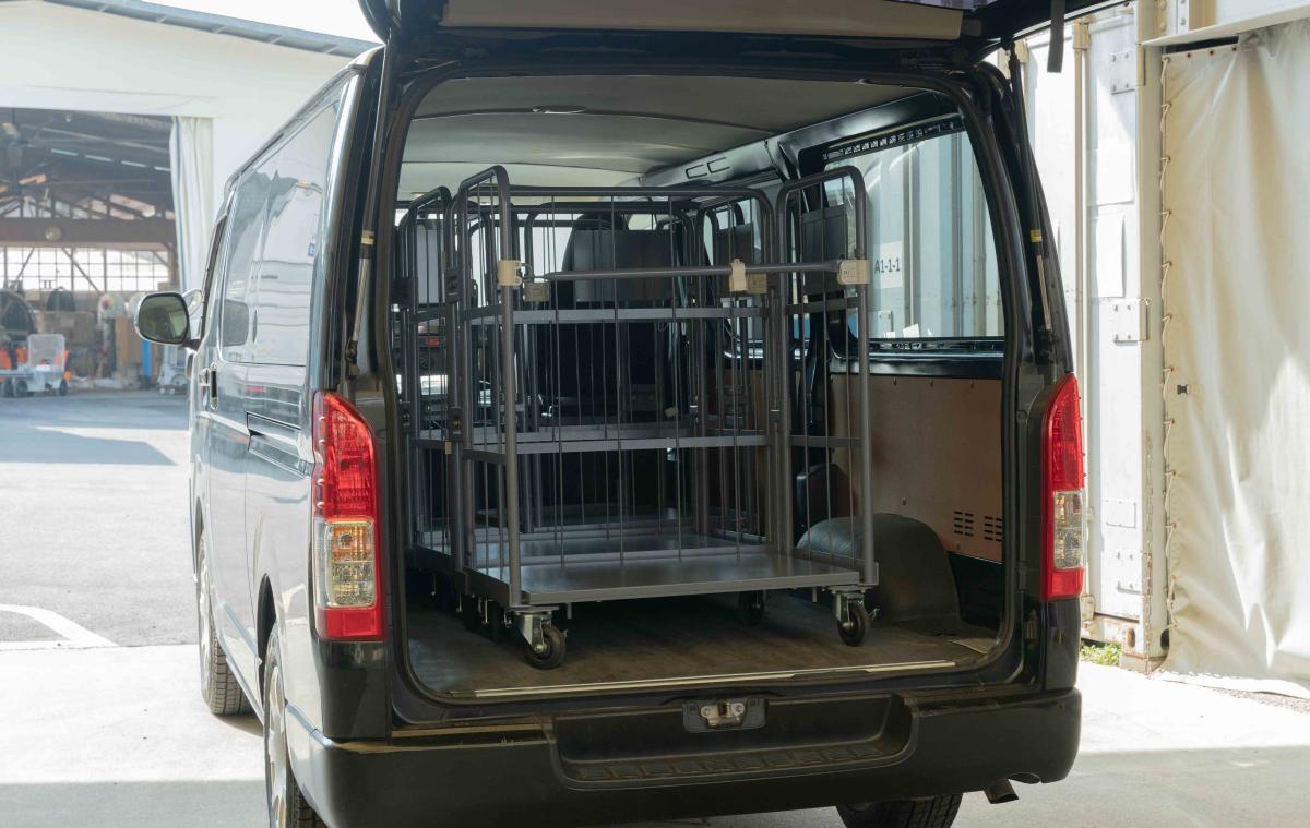 →「映像・音響業界向け!機材運搬に最適なブラックカゴ台車とは?ハイエースやバンタイプの車にも積載可能!」