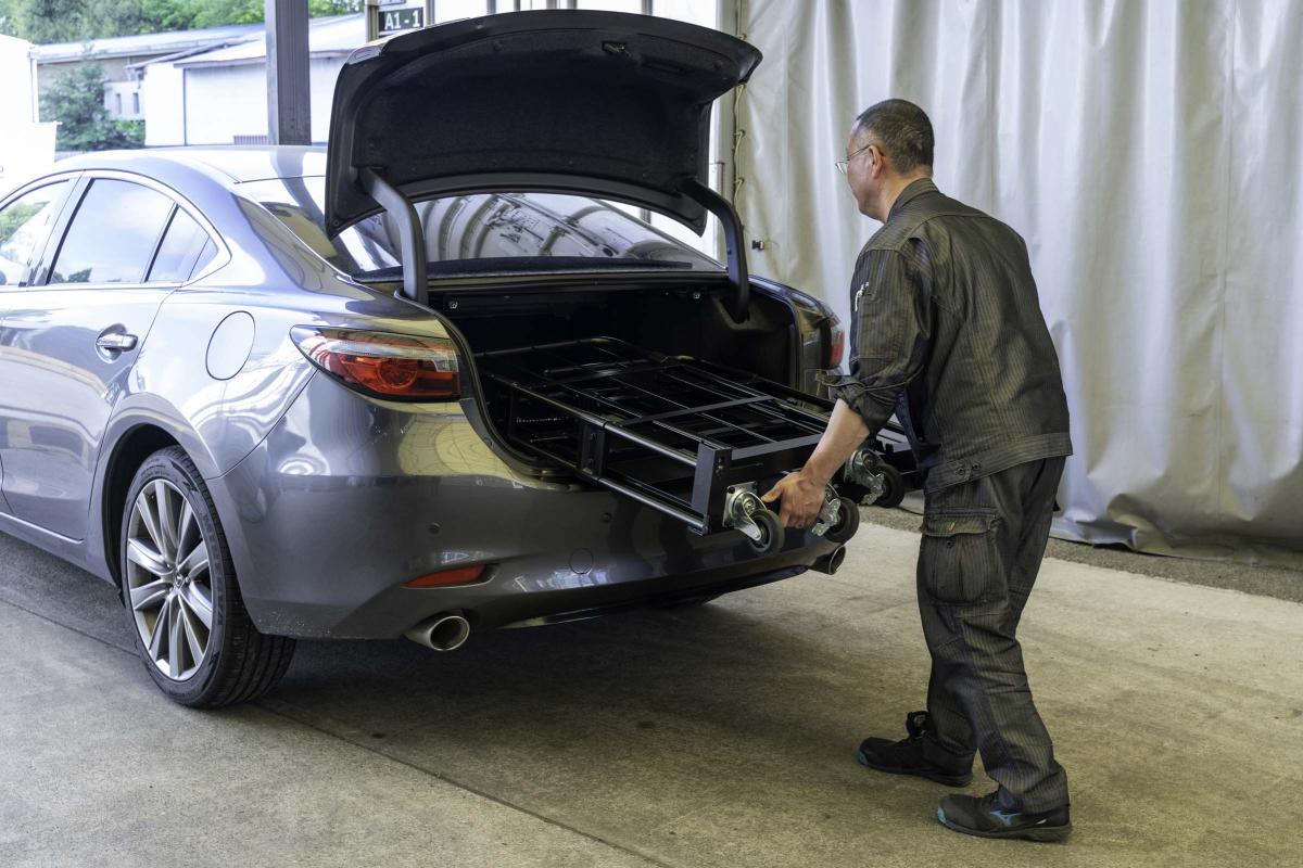 また、その小ささも相まって、今まで困難だったセダンタイプやステーションワゴンの様な全高の低い乗用車や軽自動車にも積み込みが可能となります。