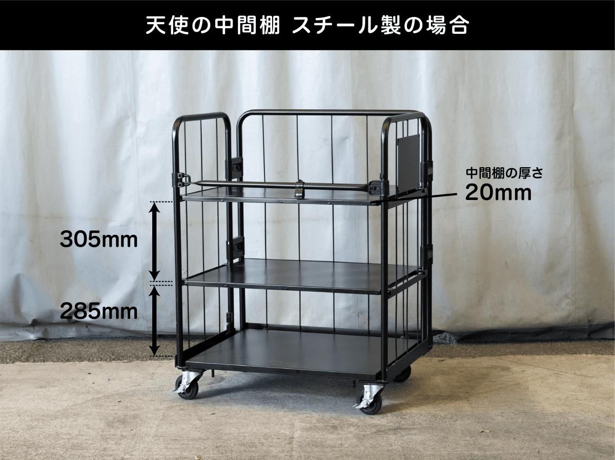 「【新品】天使の中間棚 ブラック W850×D650用 スチール製」です。耐荷重100kgで重い荷物を乗せても大丈夫!!
