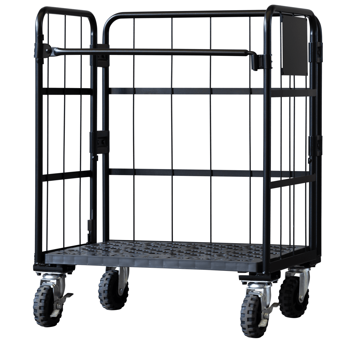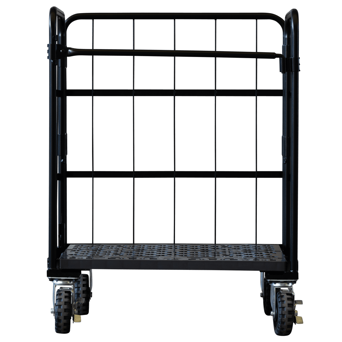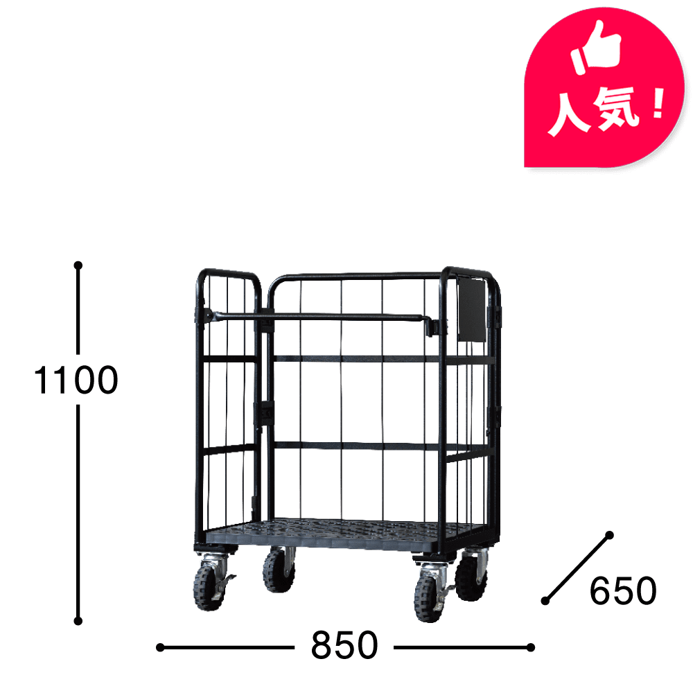 【新品】天使のカゴ台車 ブラック W850×D650×H1100 タフキャスター仕様 両面折りたたみ式【軽量・小型カゴ台車】