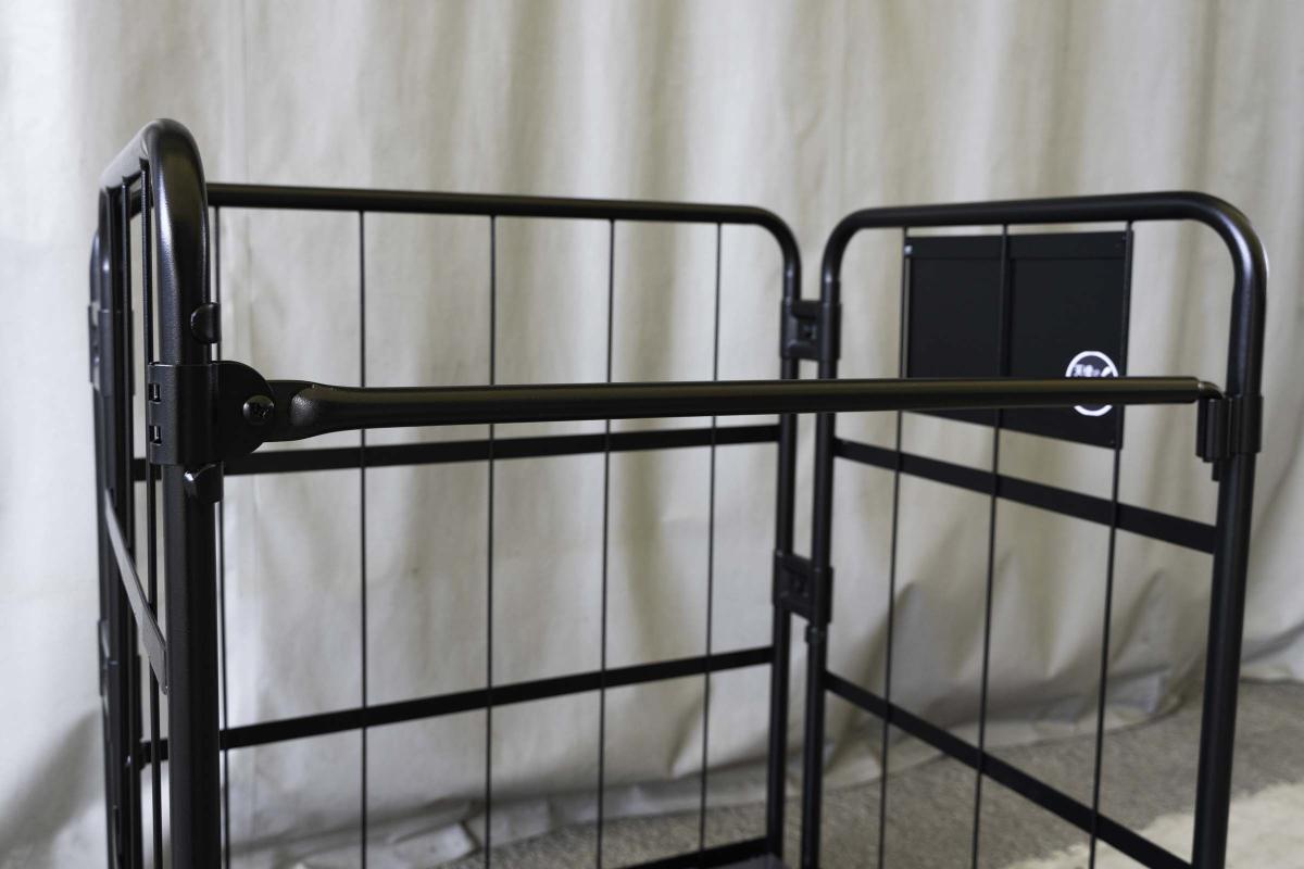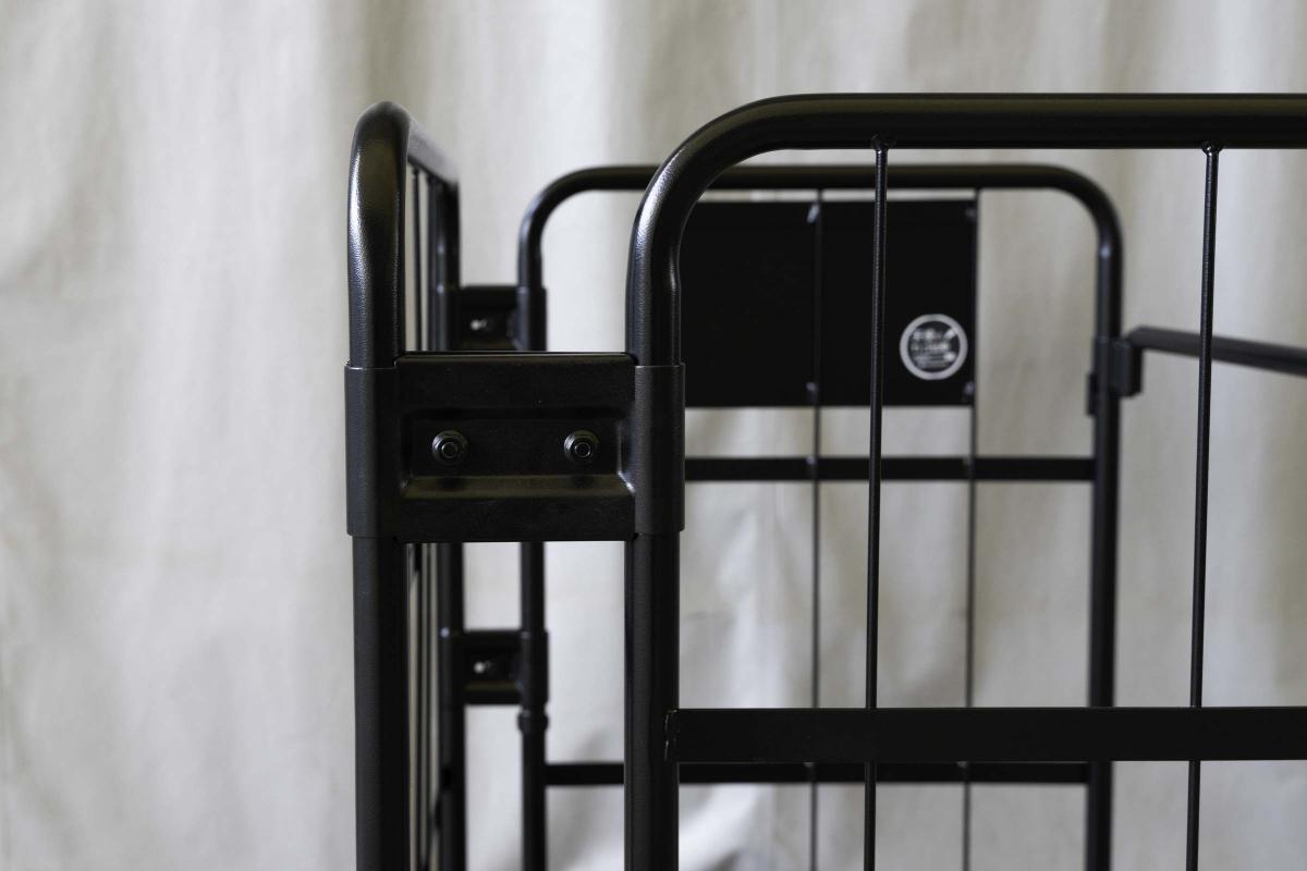 - 両面を折りたたんだ状態ではカゴ台車は自立しません。