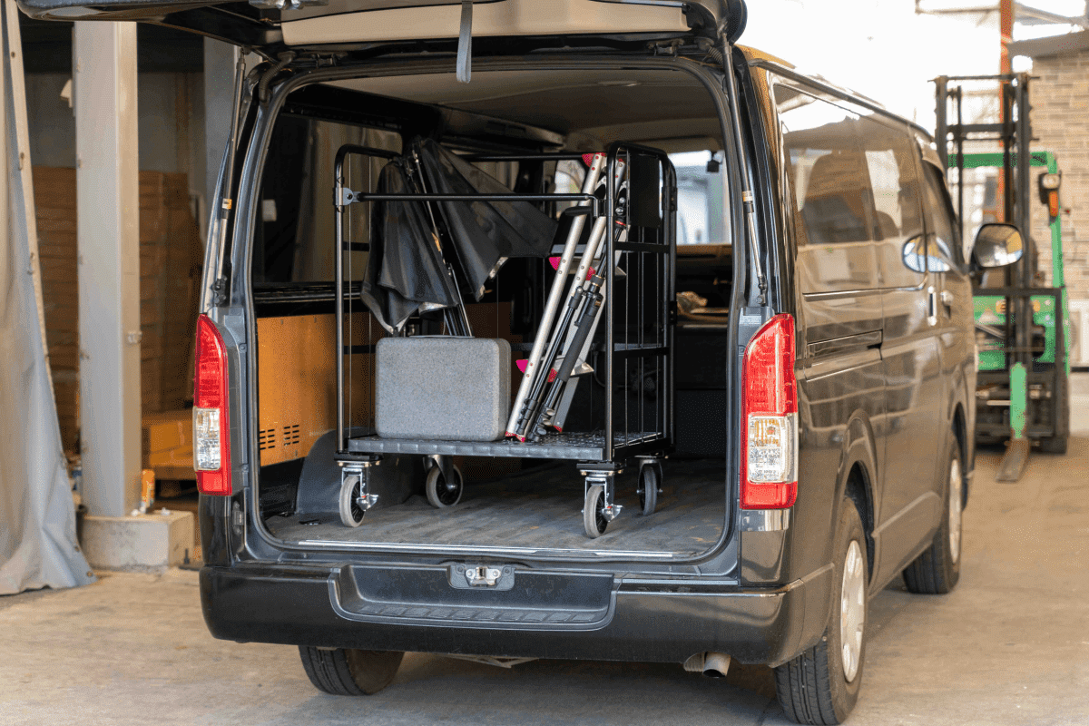 また、小型で軽量だからこそ車への積み込みもラクラク。ハイエースにはスライドドアからの搬入も可能です。様々な現場で幅広く活躍する姿は、まさに天使。