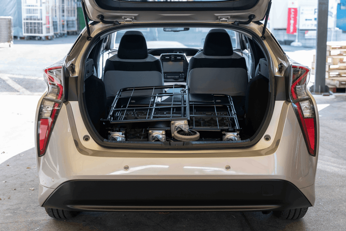 また、その小ささも相まって、今まで困難だったセダンタイプやステーションワゴンの様な全高の低い乗用車や軽自動車にも積み込みが可能となります。