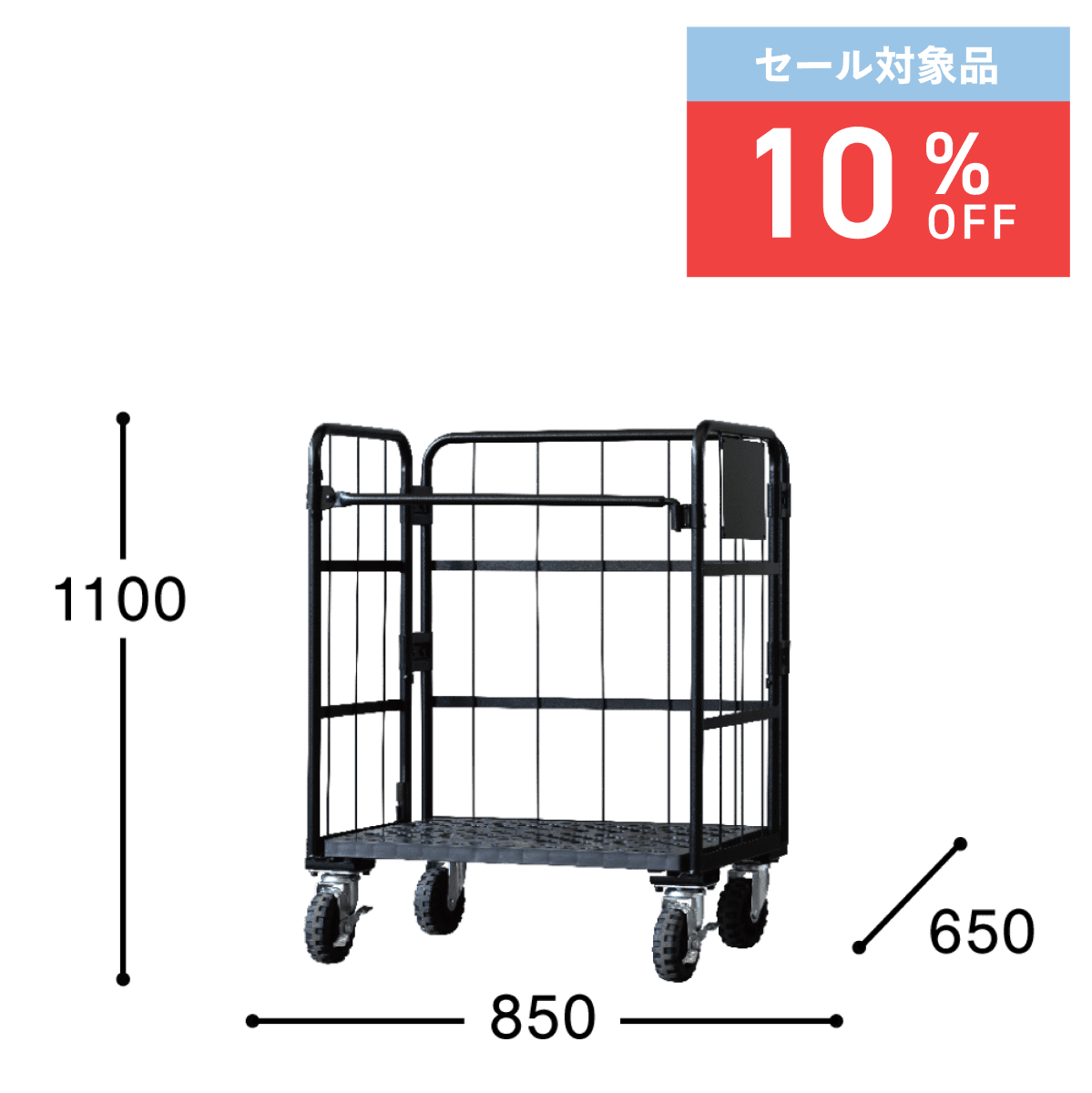【セール対象品】【新品】天使のカゴ台車 ブラック W850×D650×H1100 タフキャスター仕様 両面折りたたみ式【軽量・小型カゴ台車】