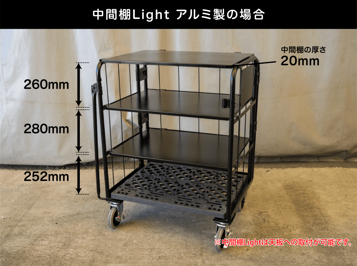 種別中間棚【新品】中間棚Light ブラック W850×D650用 アルミ製