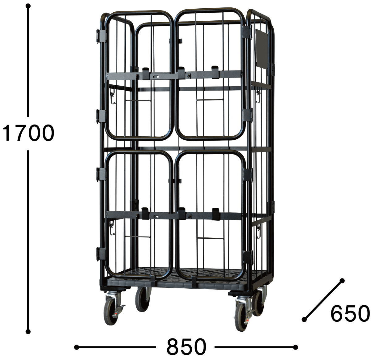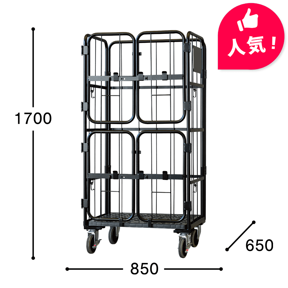 【新品】俺のカゴ台車 ブラック W850×D650×H1700 上下観音扉付き【業界初の規格!】