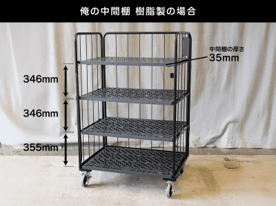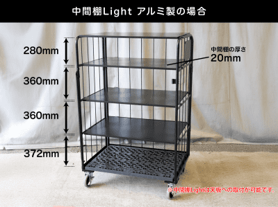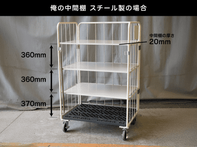 中間棚を活用することで、荷物のサイズを問わず運搬や保管が可能になり、作業効率が大幅に向上します。