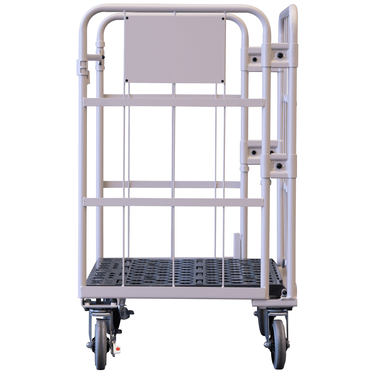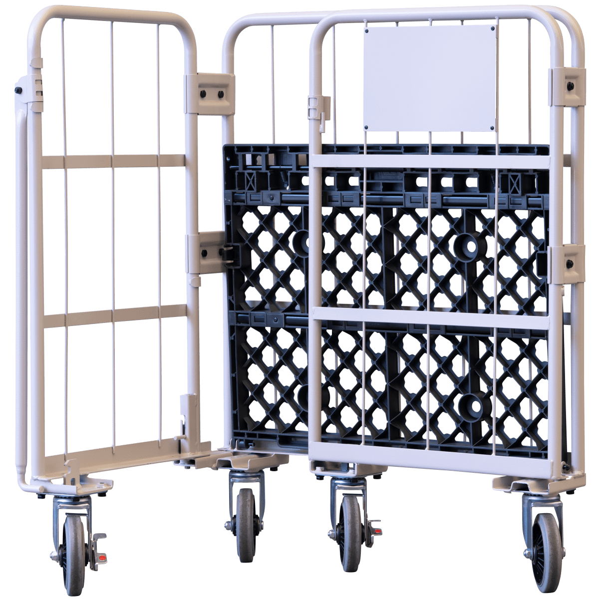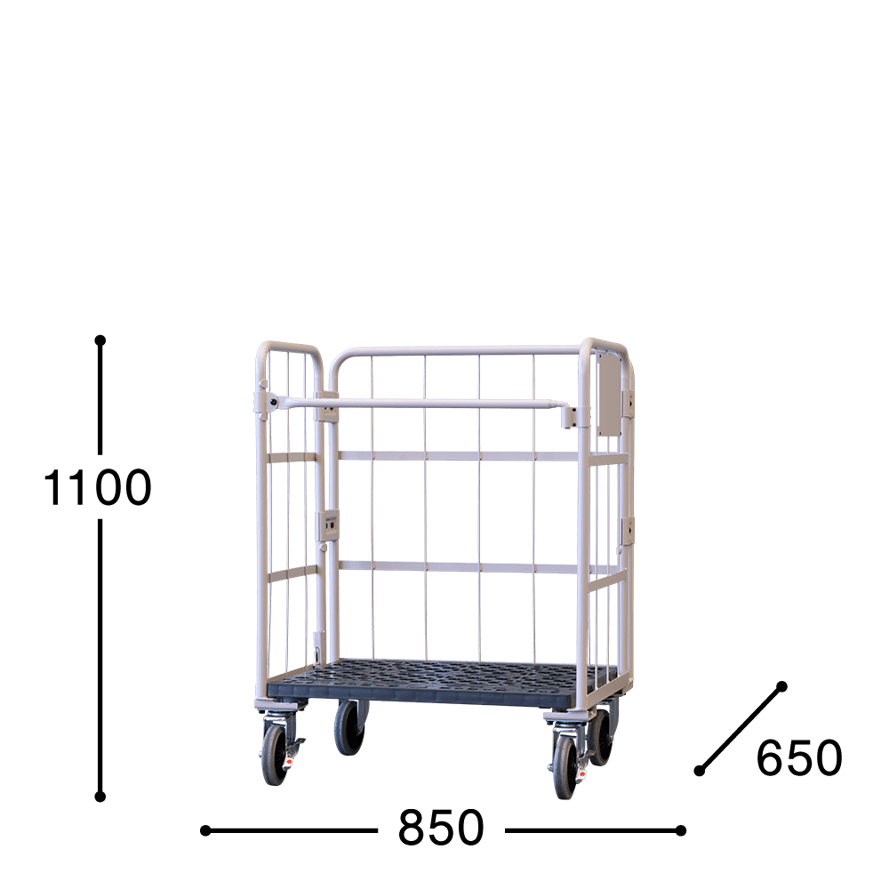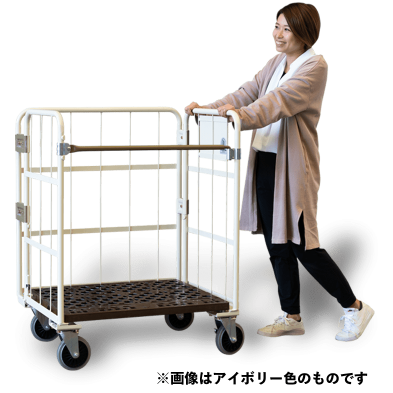 - 両面を折りたたんだ状態ではカゴ台車は自立しません。