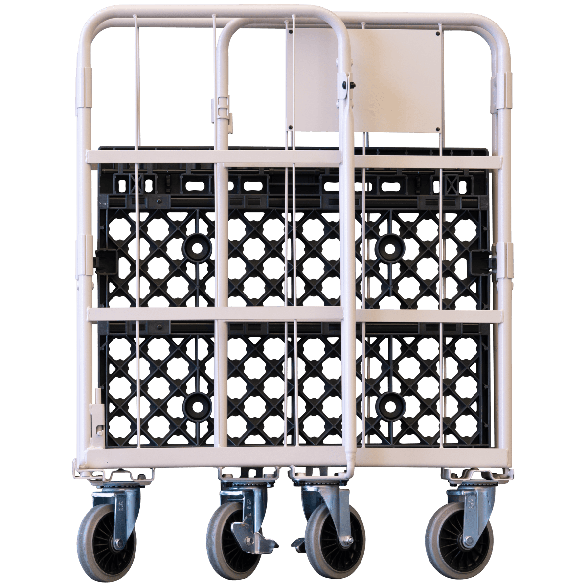 →「手押し台車よりも大量の荷物を運搬可能!荷崩れも防げるオススメの小型カゴ台車!」