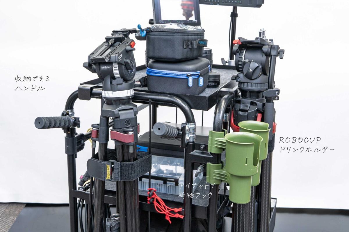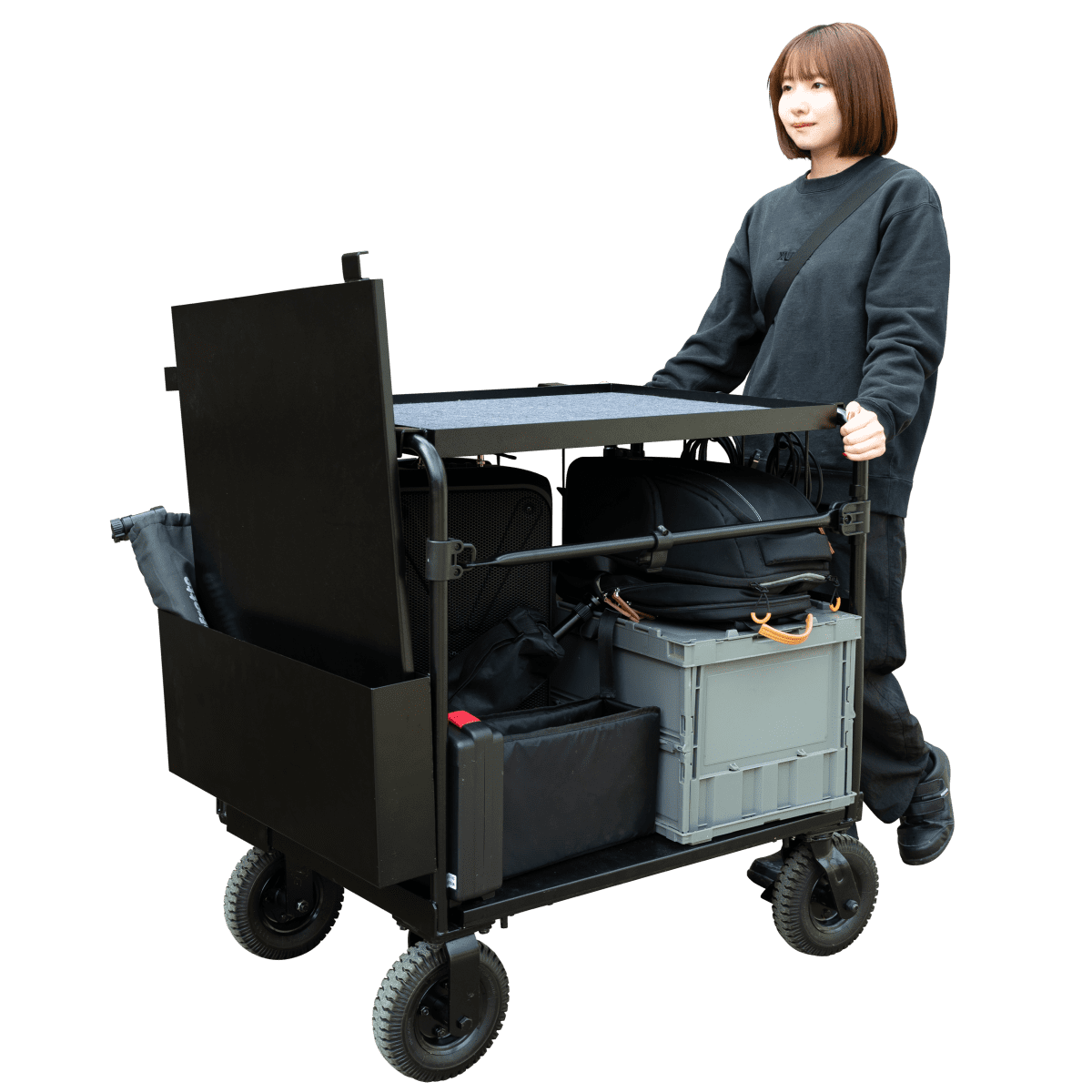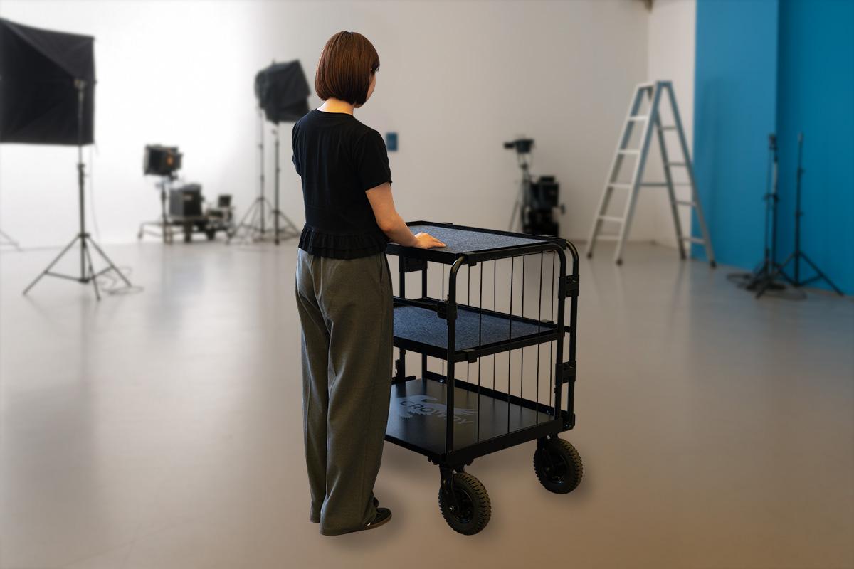 映像業界、音響業界、撮影現場のプロフェッショナルに向けて開発された、目立たないことで価値を提供する画期的なカゴ台車です。
