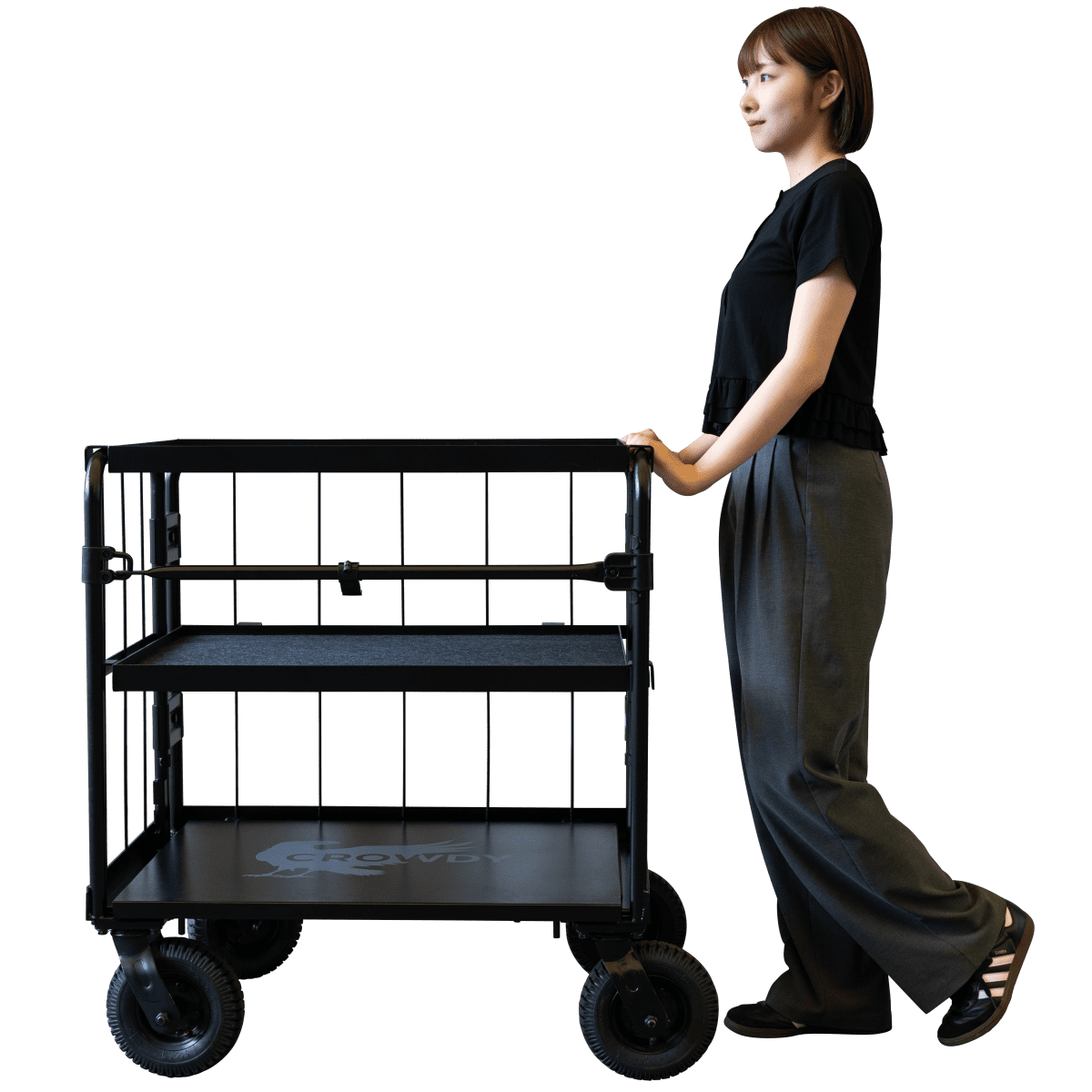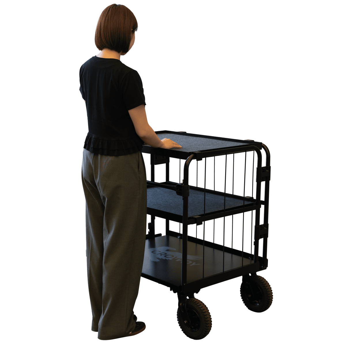 黒一色のシンプルなデザインで、現場に溶け込み、存在感を主張しない新スタイルの台車「クロウディ」が誕生しました。