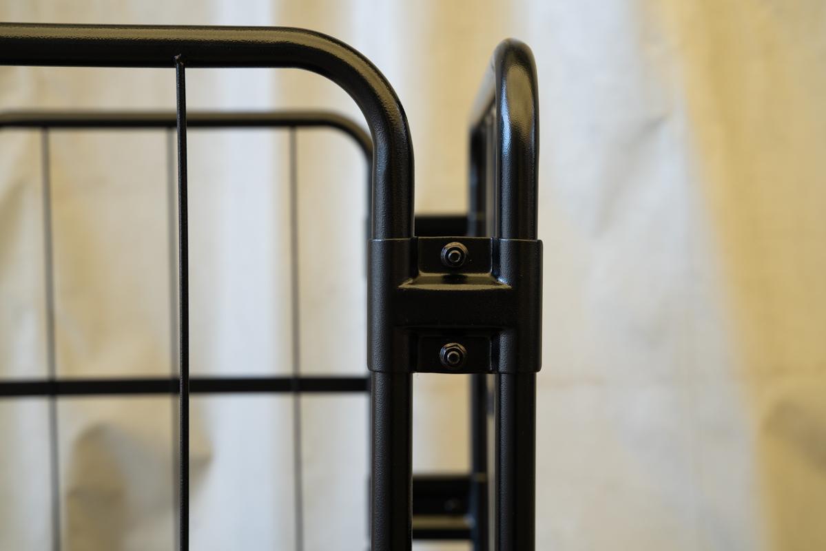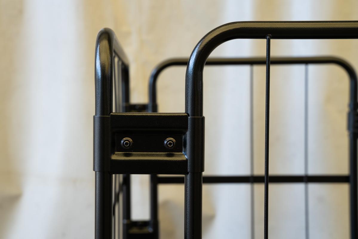 - 両面を折りたたんだ状態ではカゴ台車は自立しません。