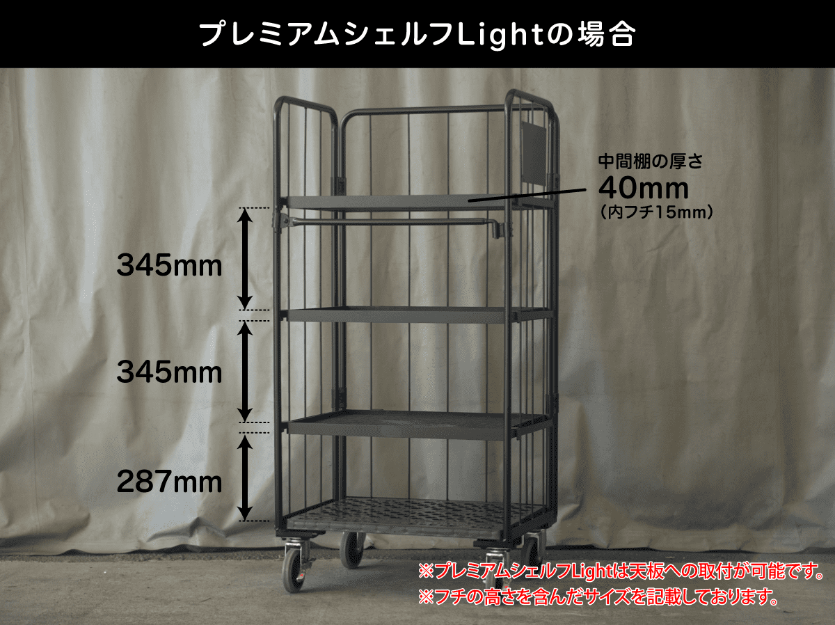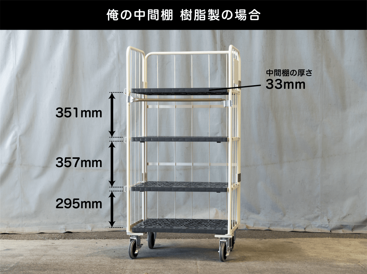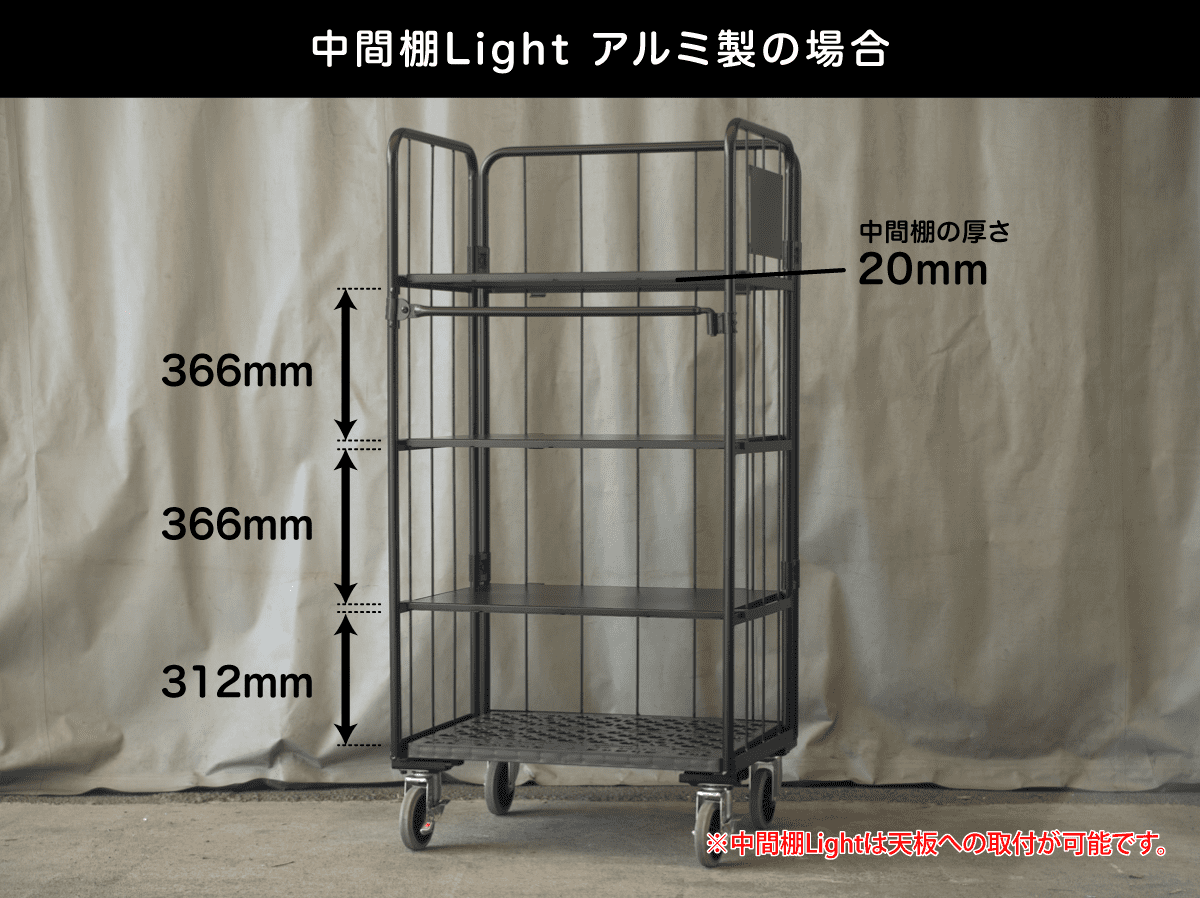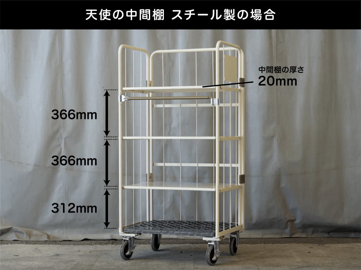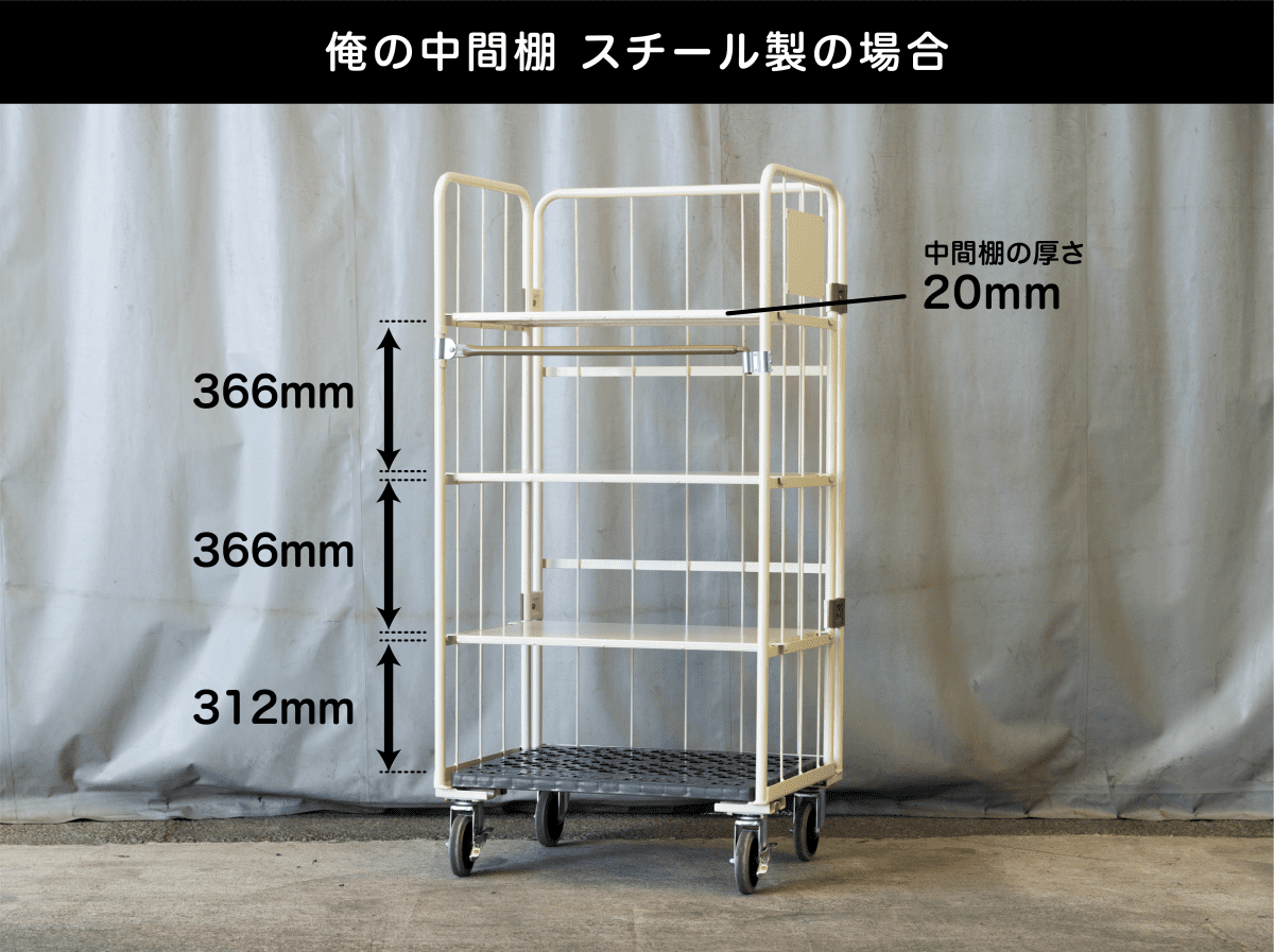 中間棚を活用することで、荷物のサイズを問わず運搬や保管が可能になり、作業効率が大幅に向上します。