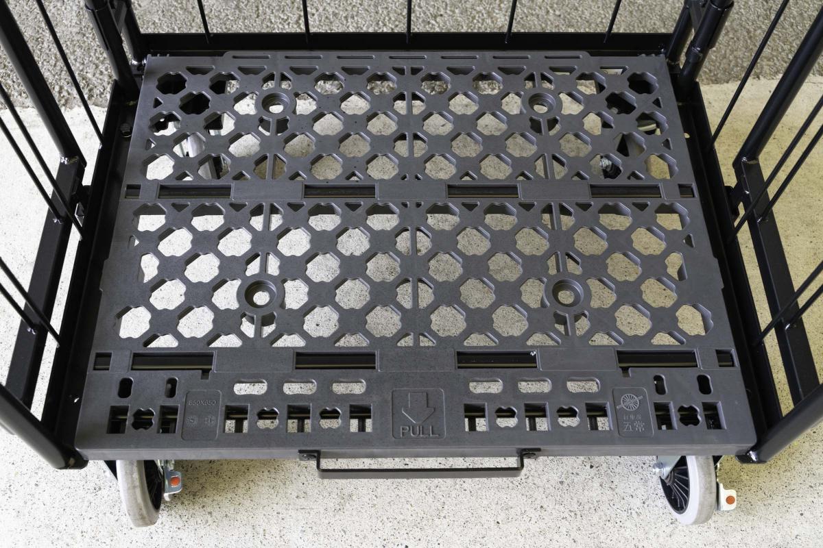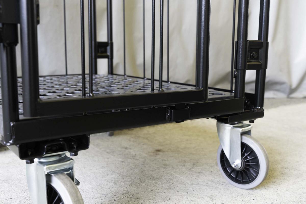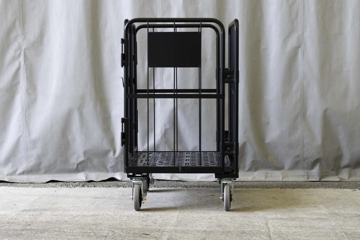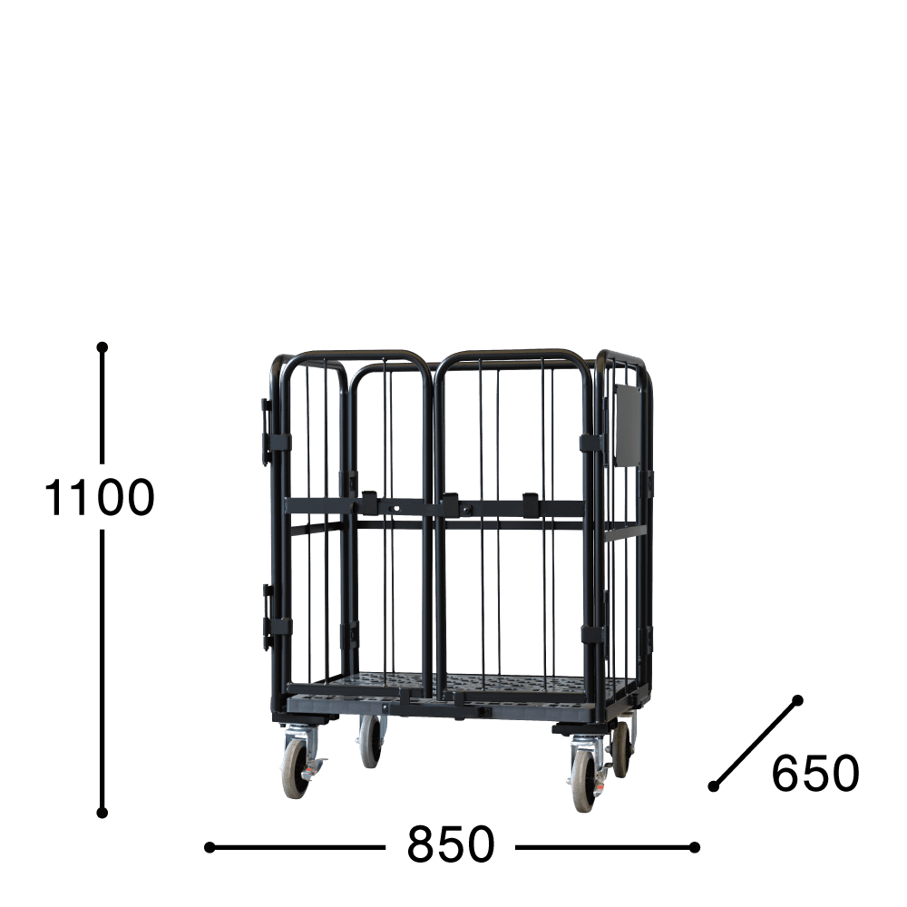 【受注生産品】天使のカゴ台車 ブラック W850×D650×H1100 観音扉付き【軽量・小型カゴ台車】【1ロット30台~】
