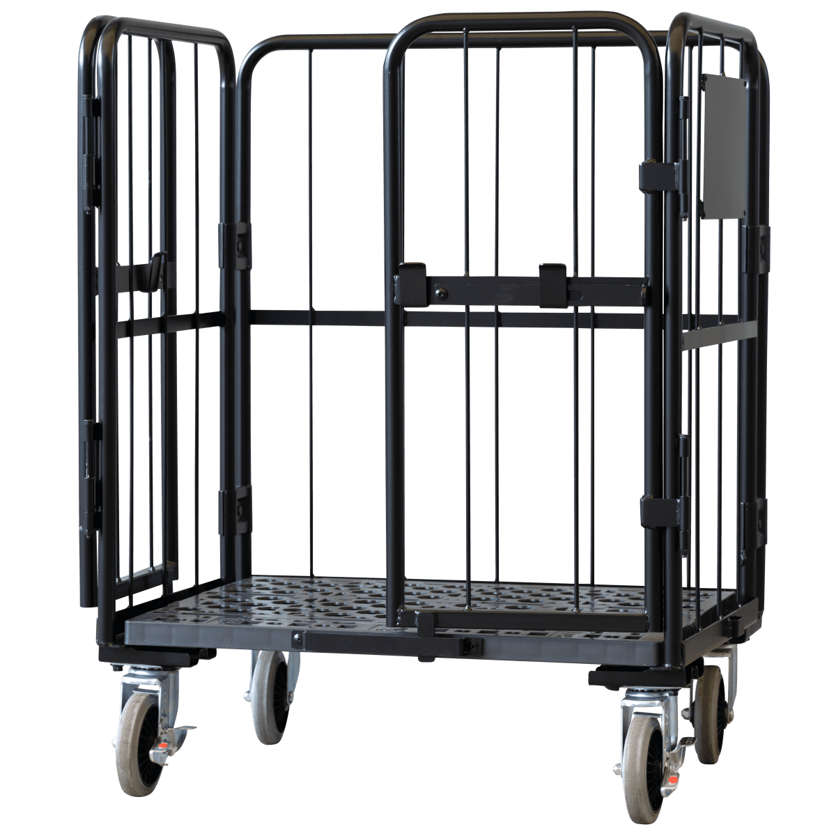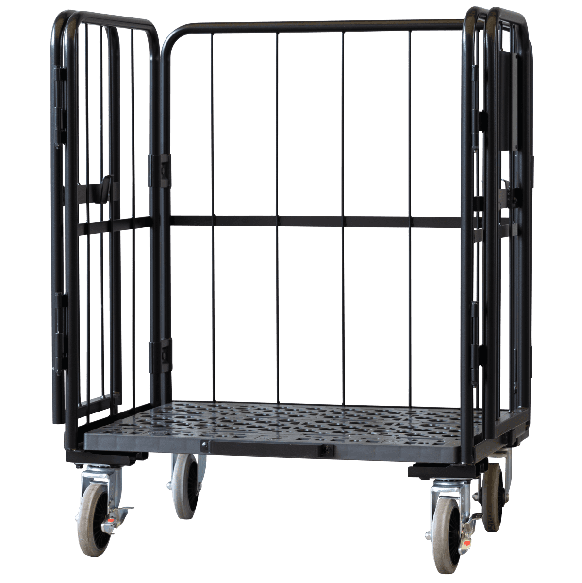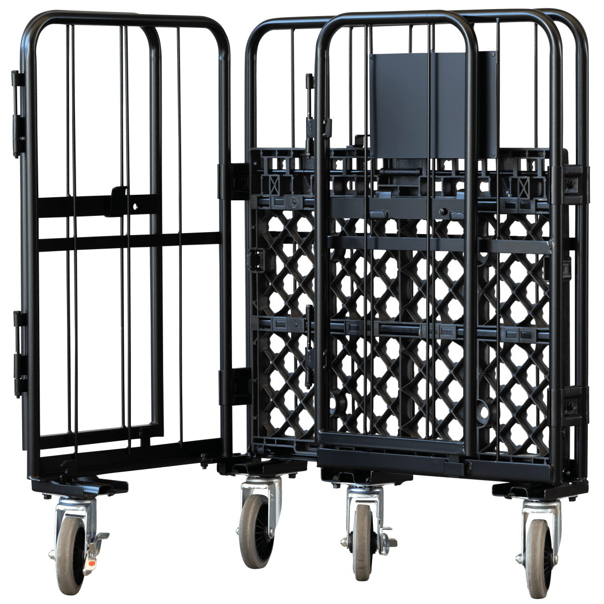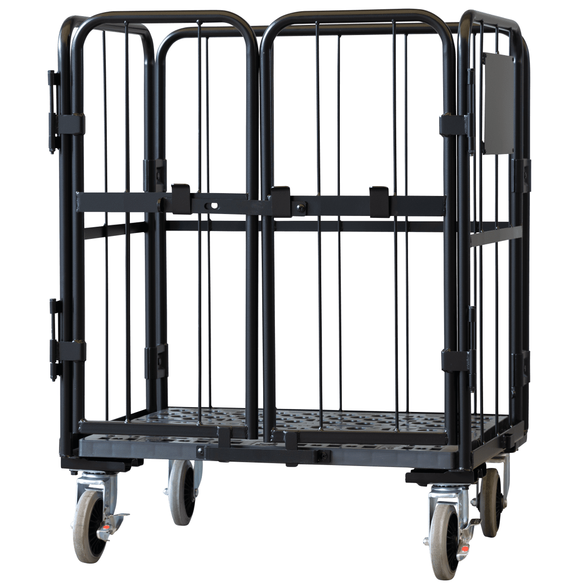 【受注生産品】天使のカゴ台車 ブラック W850×D650×H1100 観音扉付き【軽量・小型カゴ台車】【1ロット30台~】