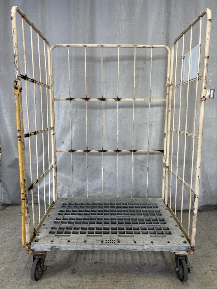 【中古】カゴ台車 アイボリー W1100×D800×H1700 メーカー混在