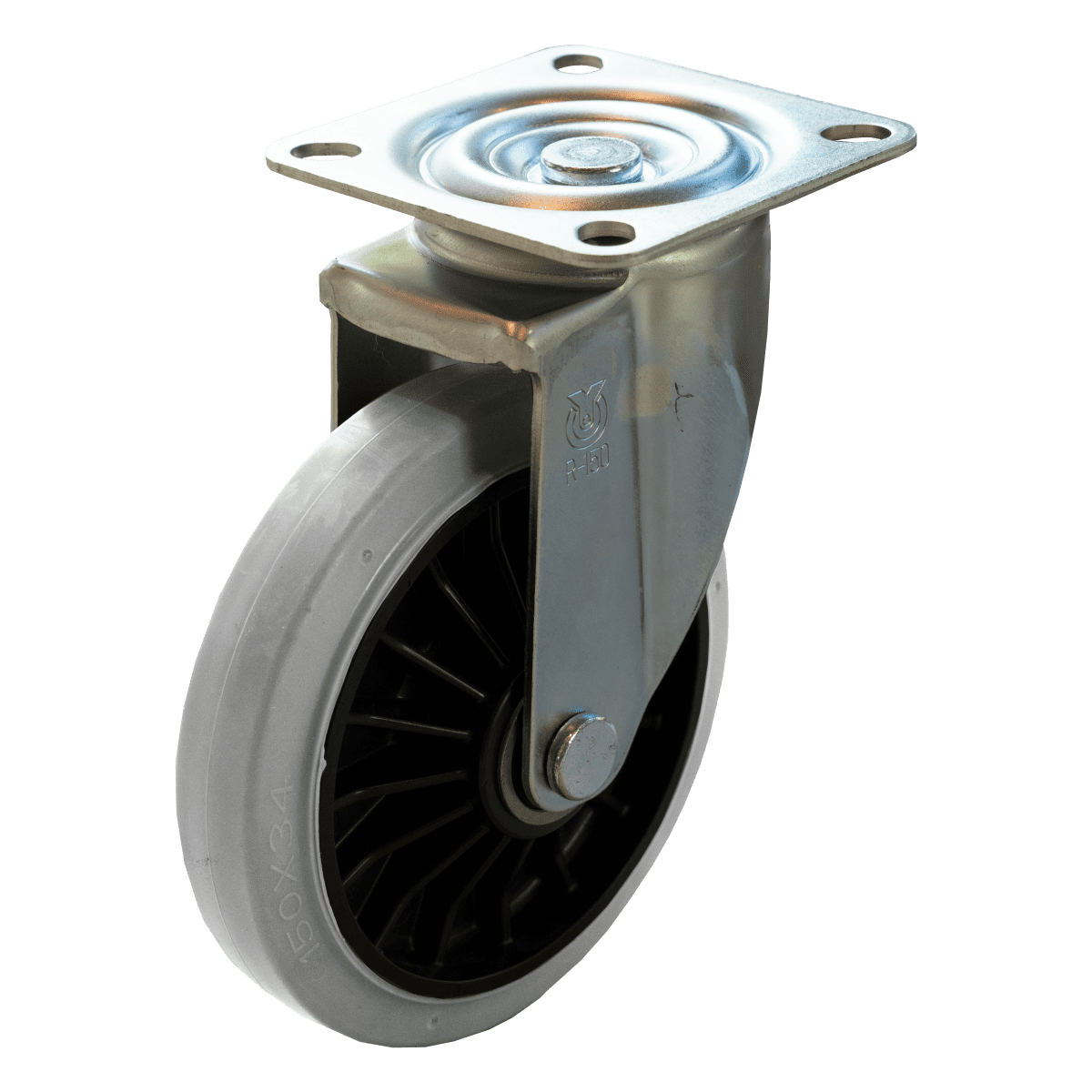 - 国内メーカー様にOEMで製造しているグレーゴムキャスター。グレーゴム使用のため、ゴム跡が目立ちにくい!