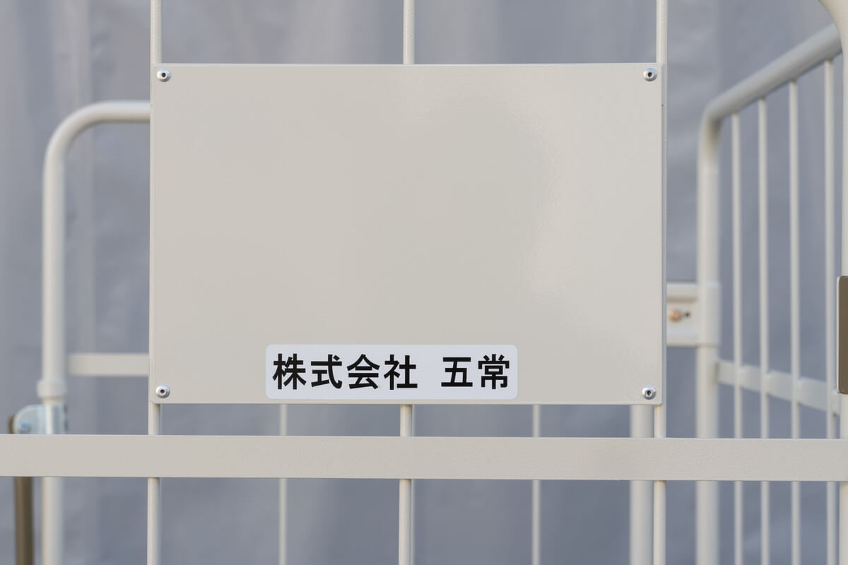 社名シールを貼ることでカゴ台車を管理しやすくなり、紛失や盗難の防止にもつながります。
