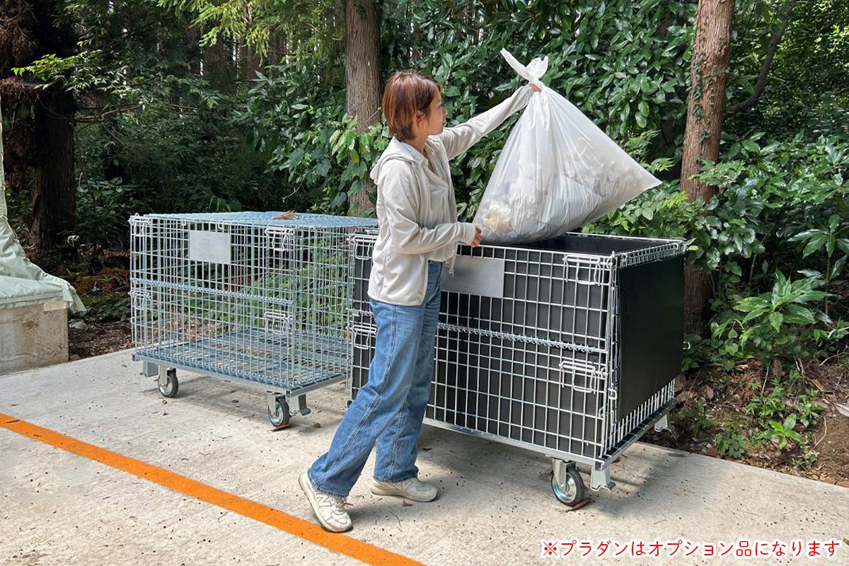 →「薪の保管・管理には「俺のカゴ台車 ブラック」が最適!メッシュパレットで薪ゴミも簡単保管」