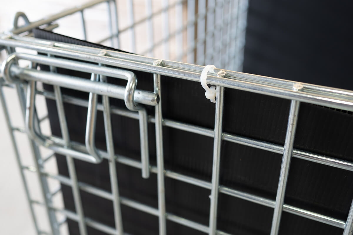 メッシュパレットで金属製品を保管、搬送する際メッシュパレットの金属との干渉が傷やサビの原因となってしまいます。しかしこのプラダンをメッシュパレットの内側に取り付けることで金属同士が直接触れなくなるので傷やサビの発生を防ぐ事が可能です。また、メッシュパレットの隙間からこぼれ出てしまうような小さいものでも保管が可能になります。